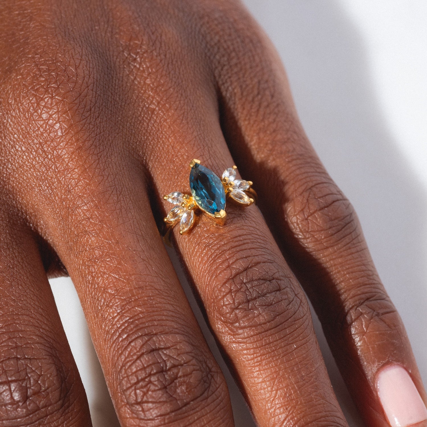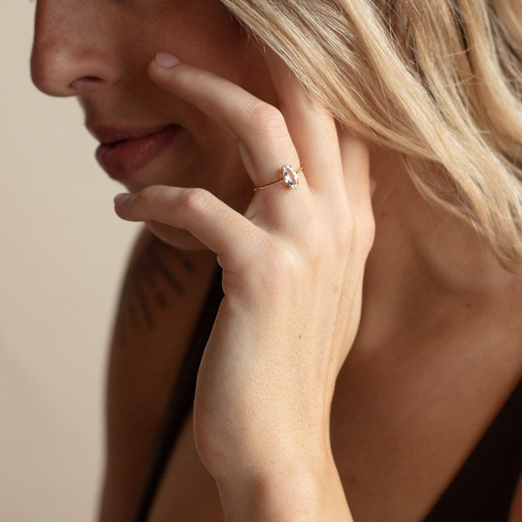 Solid Gold Gemstone Marquise Ring in White Topaz