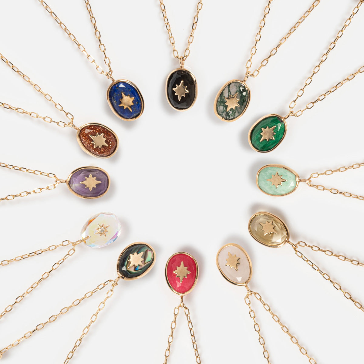 Solid Gold Crystal Amulet Necklace for Manifestation
