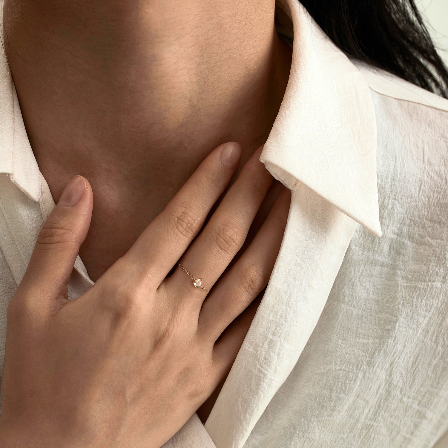 Solid Gold White Topaz Pear Chain Ring
