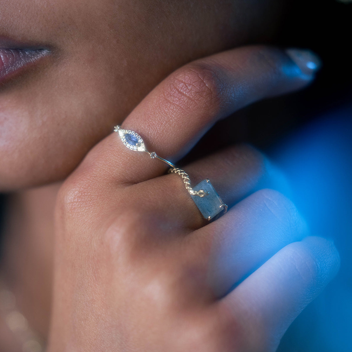 Solid Gold Iolite Evil Eye Ring