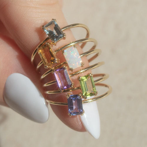 Multi Gem Baguette CZ Stacking Ring