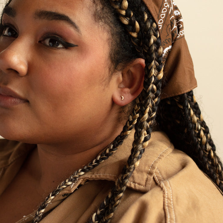 Solid Gold Crescent Moon Flat Back Studs