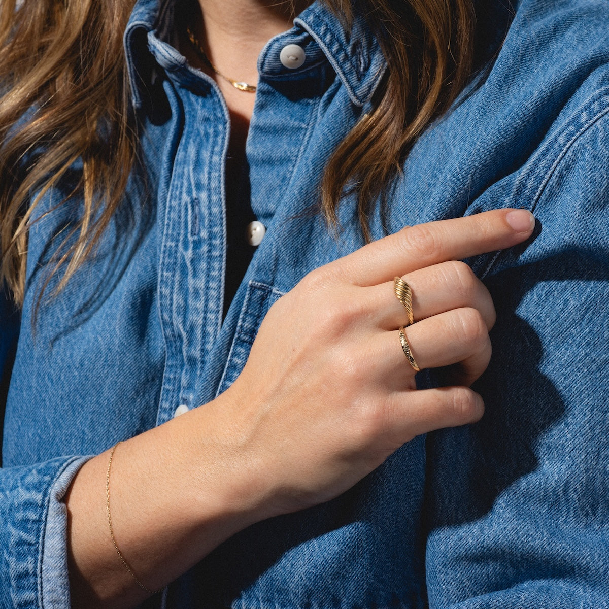 Commemorate your infinite bond with the 14k Till Death Layering Ring by Charlie and Marcelle. made exclusively for Koogrl. A beautifully timeless solid gold band engraved with "Till Death" - an elegant testament to a loving vow.