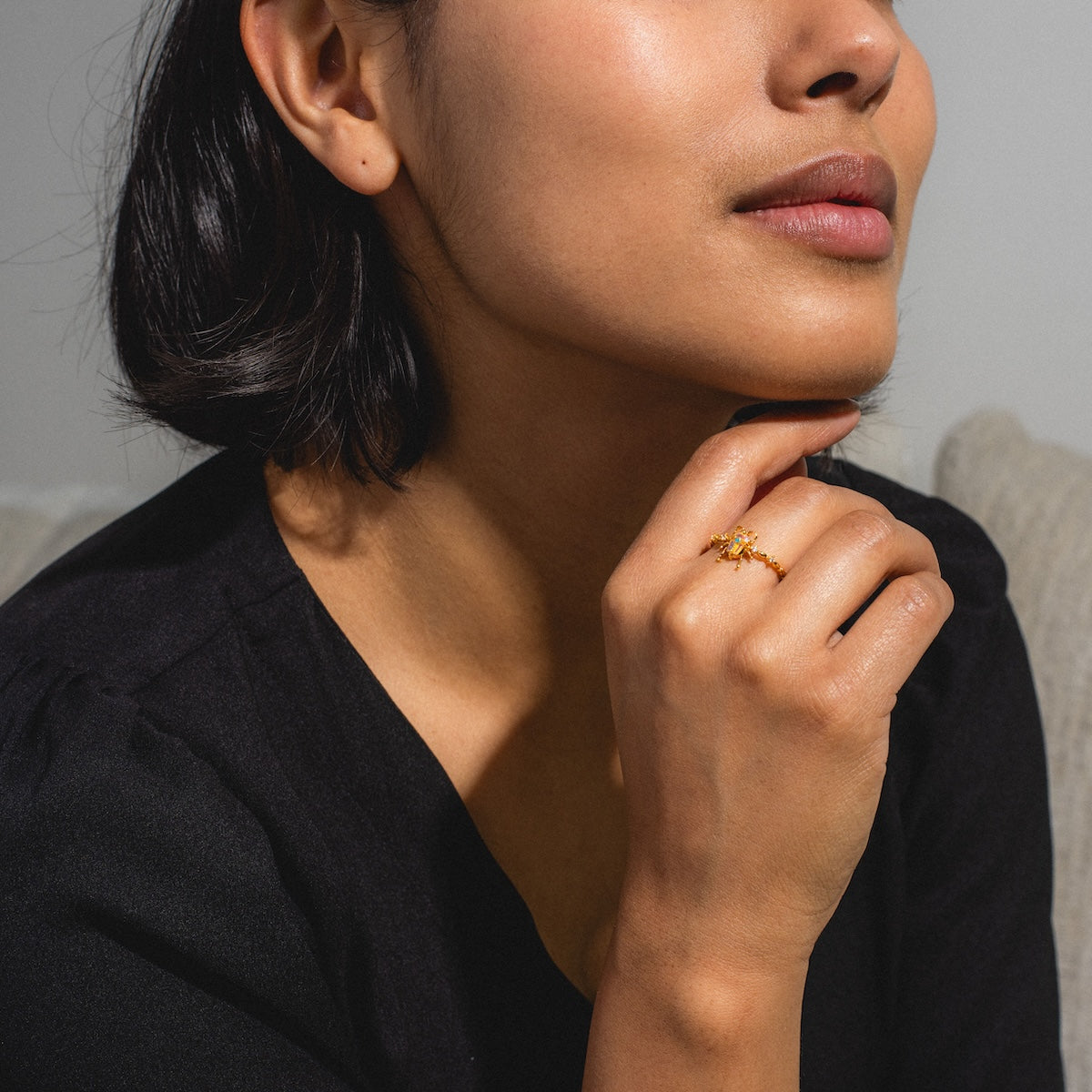 Putting the glam back in nature! The Beetlejuice Ring is captivating with iridescent CZ stones and sweetly delicate details - a gorgeously unique addition to any ring stack.