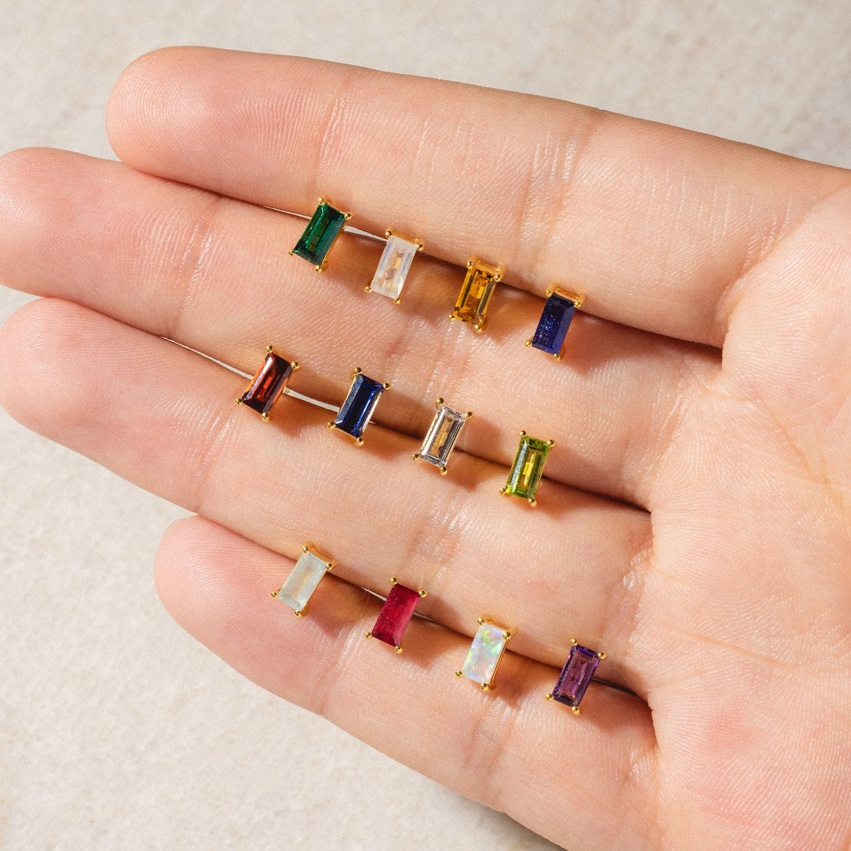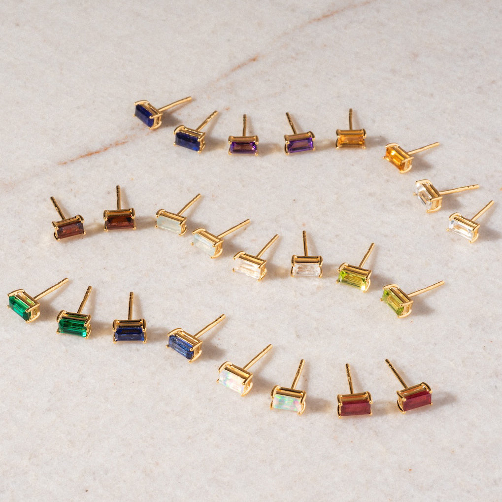 An essential gemstone stud available in all 12 birthstones! These classically chic birthstone stud earrings are crafted in high quality yellow gold vermeil for comfort and longevity. Choose your birthstone. your favorite gem. or your favorite color!