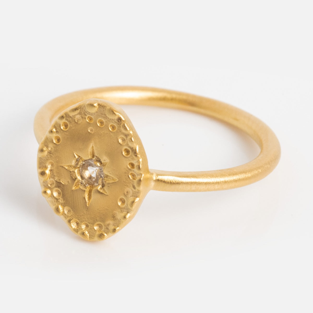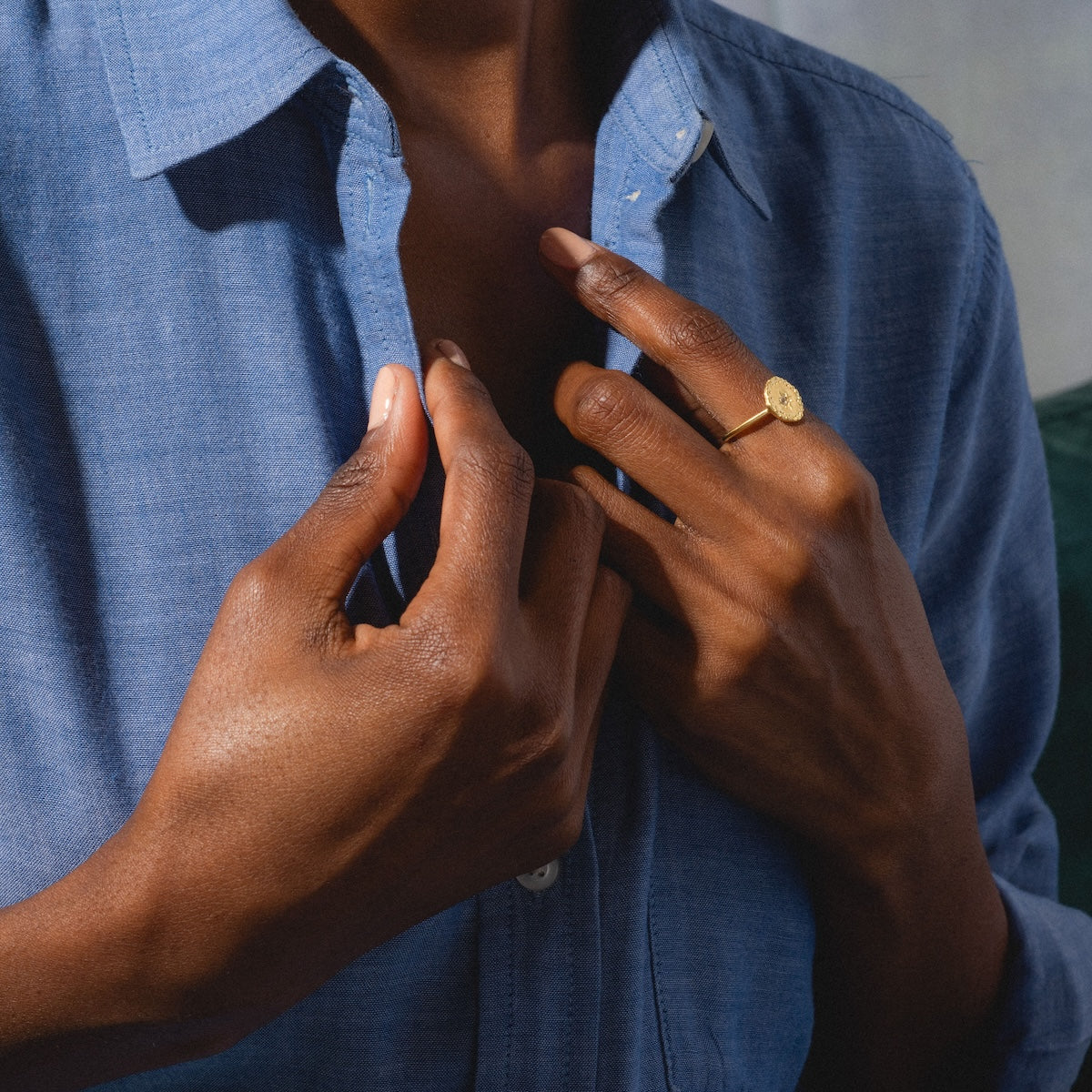 The Brahma Ring brings a uniquely luxe vibe to any everyday look. This stunning ring features a shimmering white topaz at the center of beautifully detailed signet with an elegant matte finish.