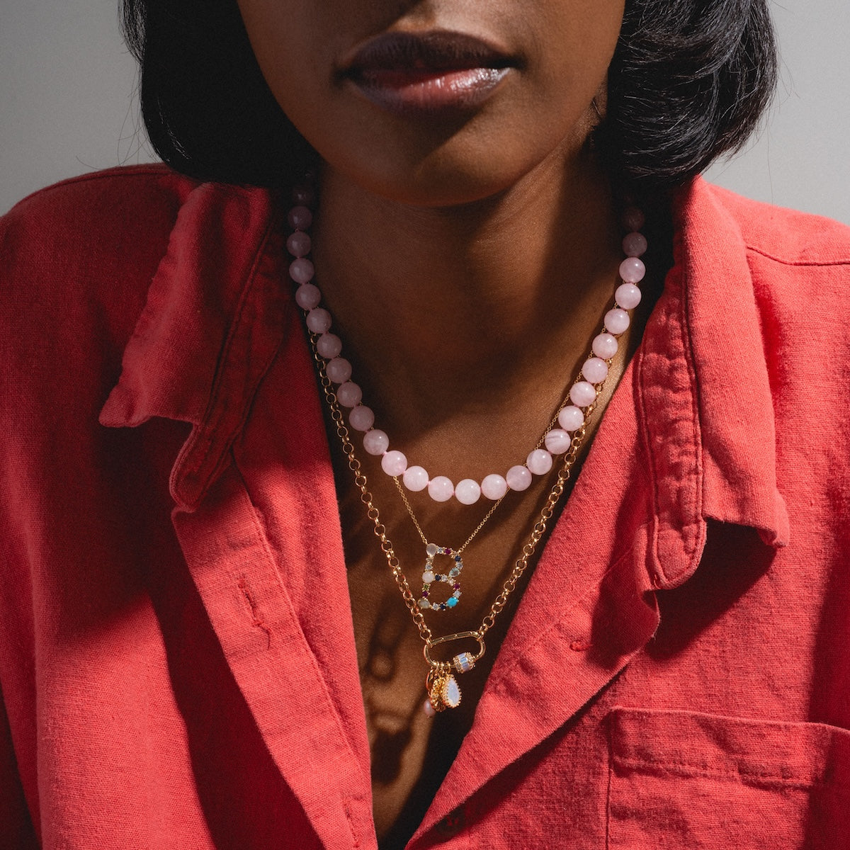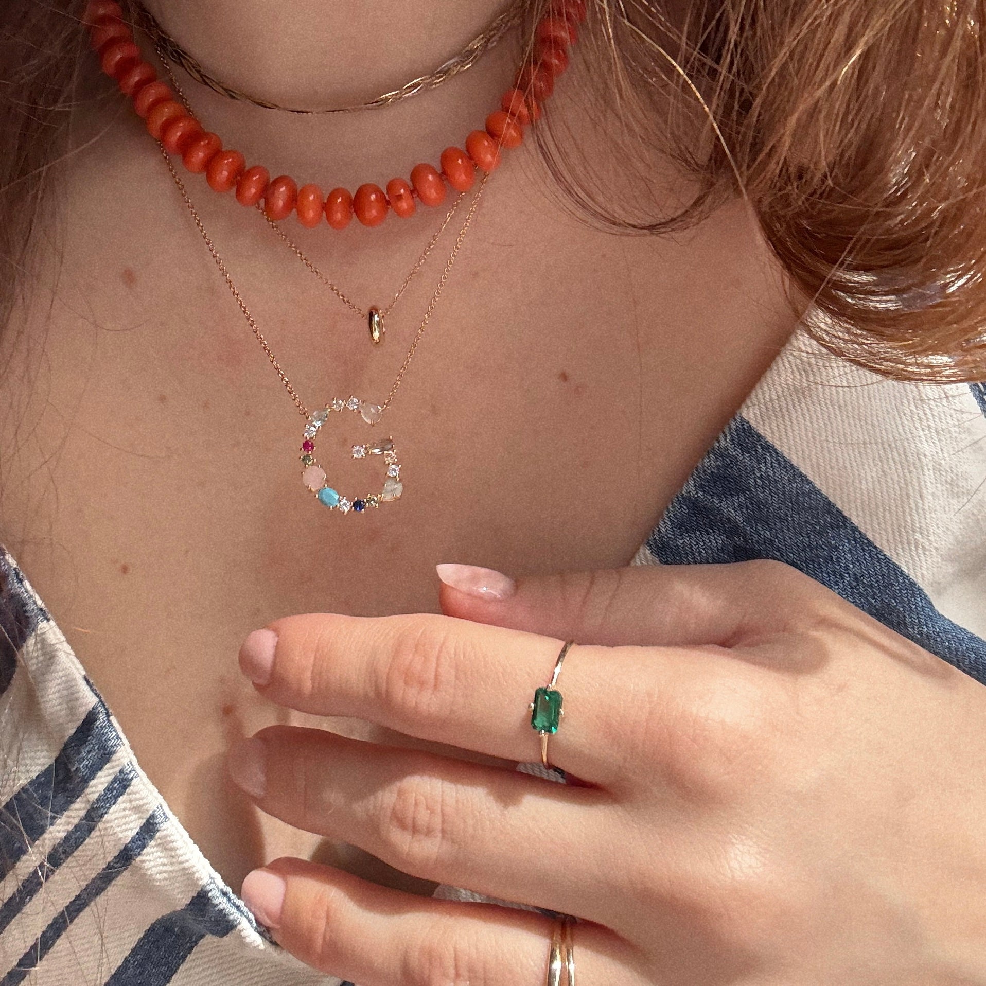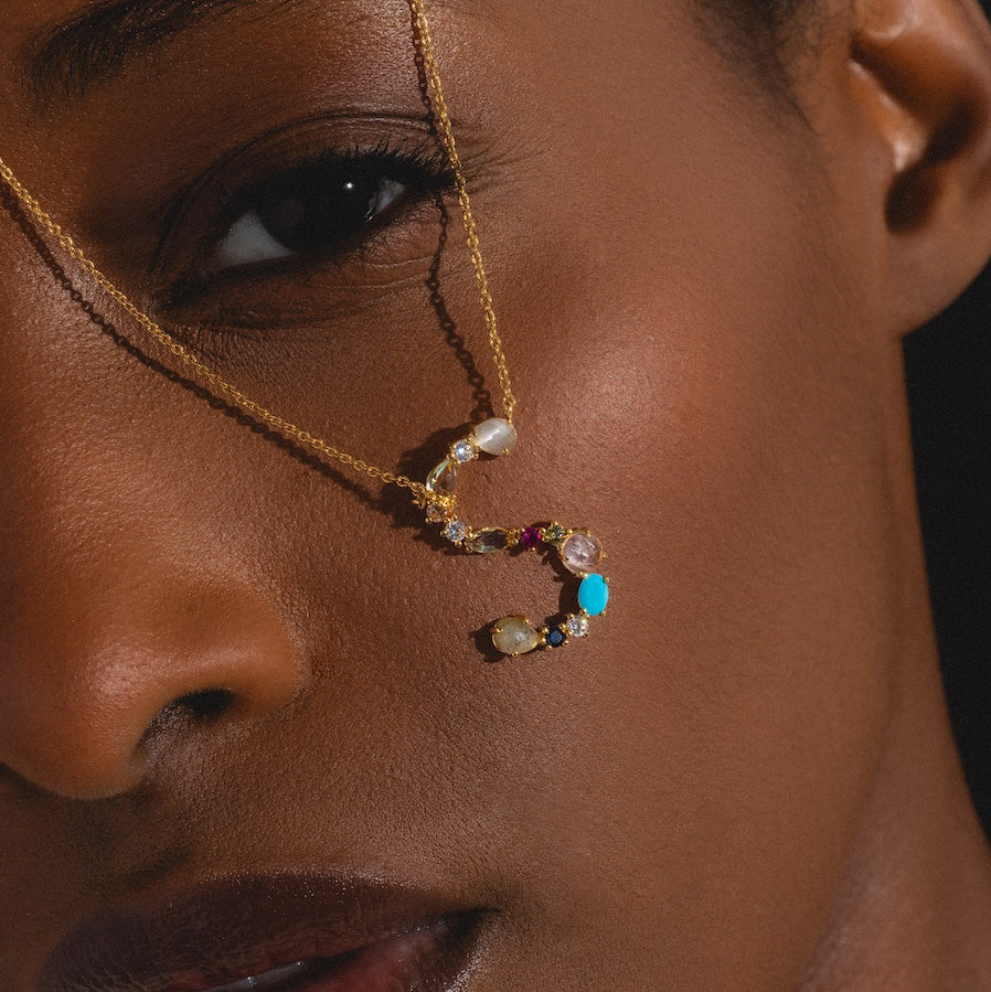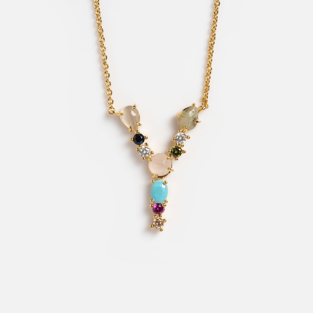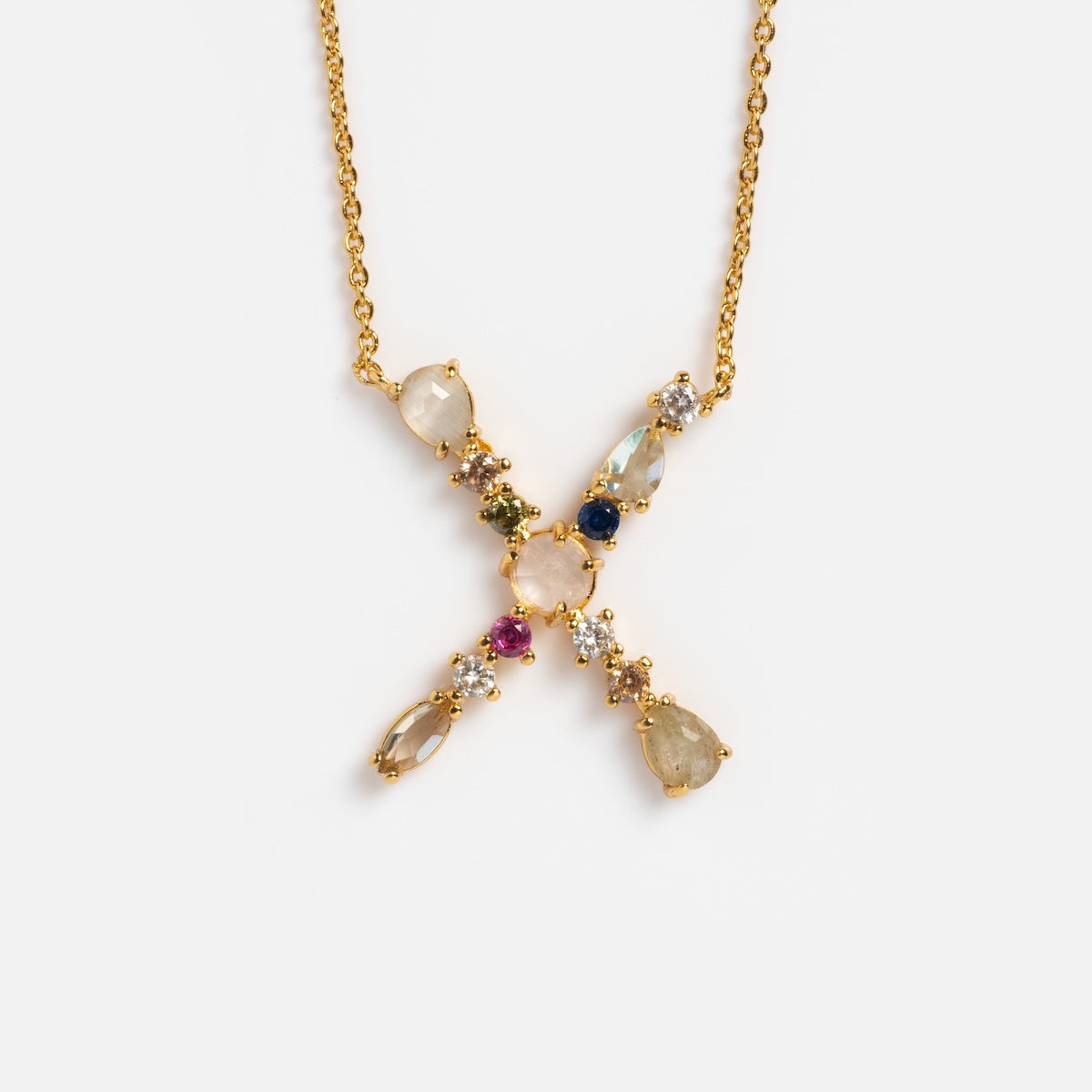 A colorful new take on a favorite monogram style by Tai Jewelry. Gleaming with sparkling cubic zirconia stones in a vibrant array of colors and shapes. this stunning necklace is the most gorgeously bold way to personalize your necklace stack.