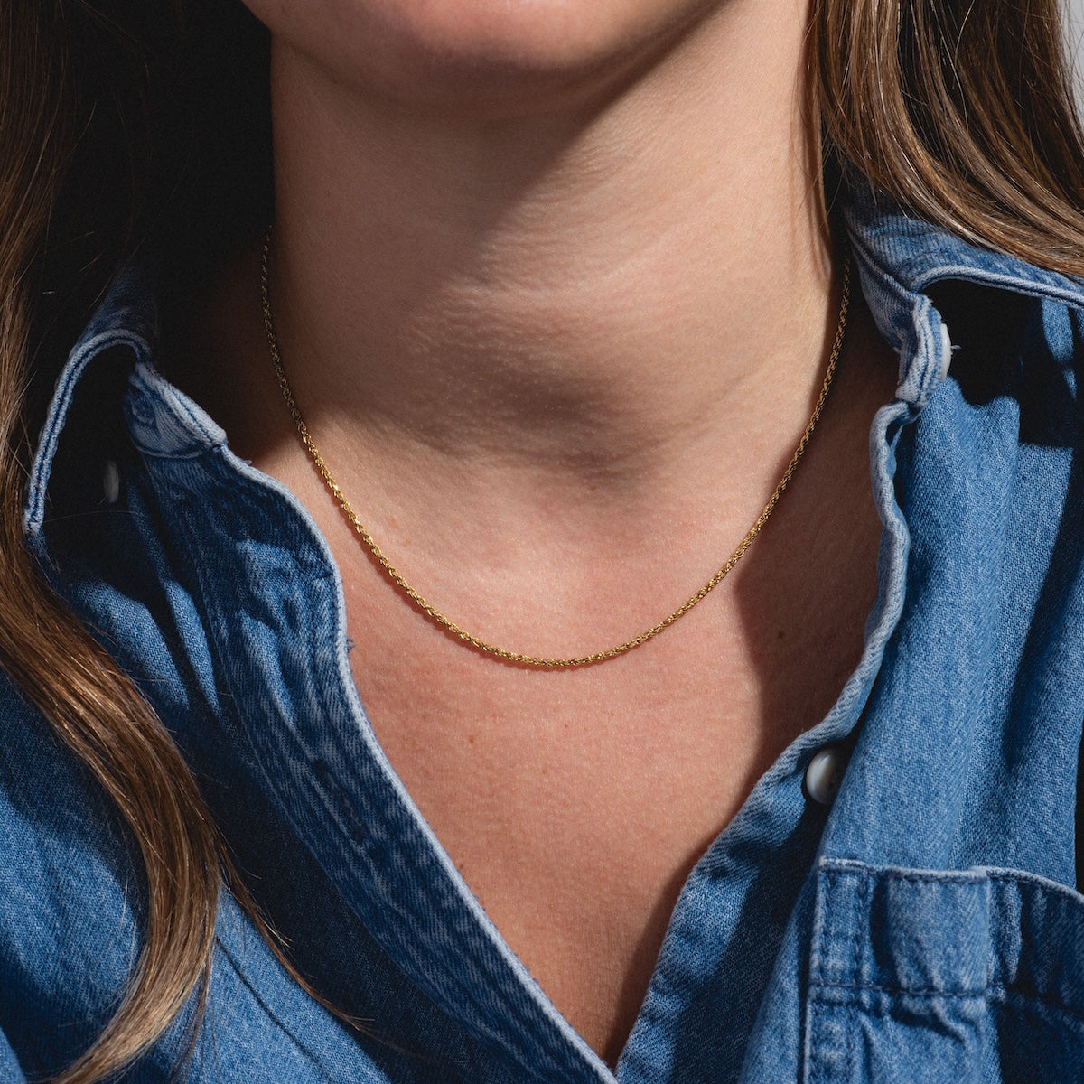 Can't go wrong with a classic! The Delicate Rope chain features a sleek. dainty design making it the perfect base for charms and pendants. but can be worn on its own for an chic minimal look.
