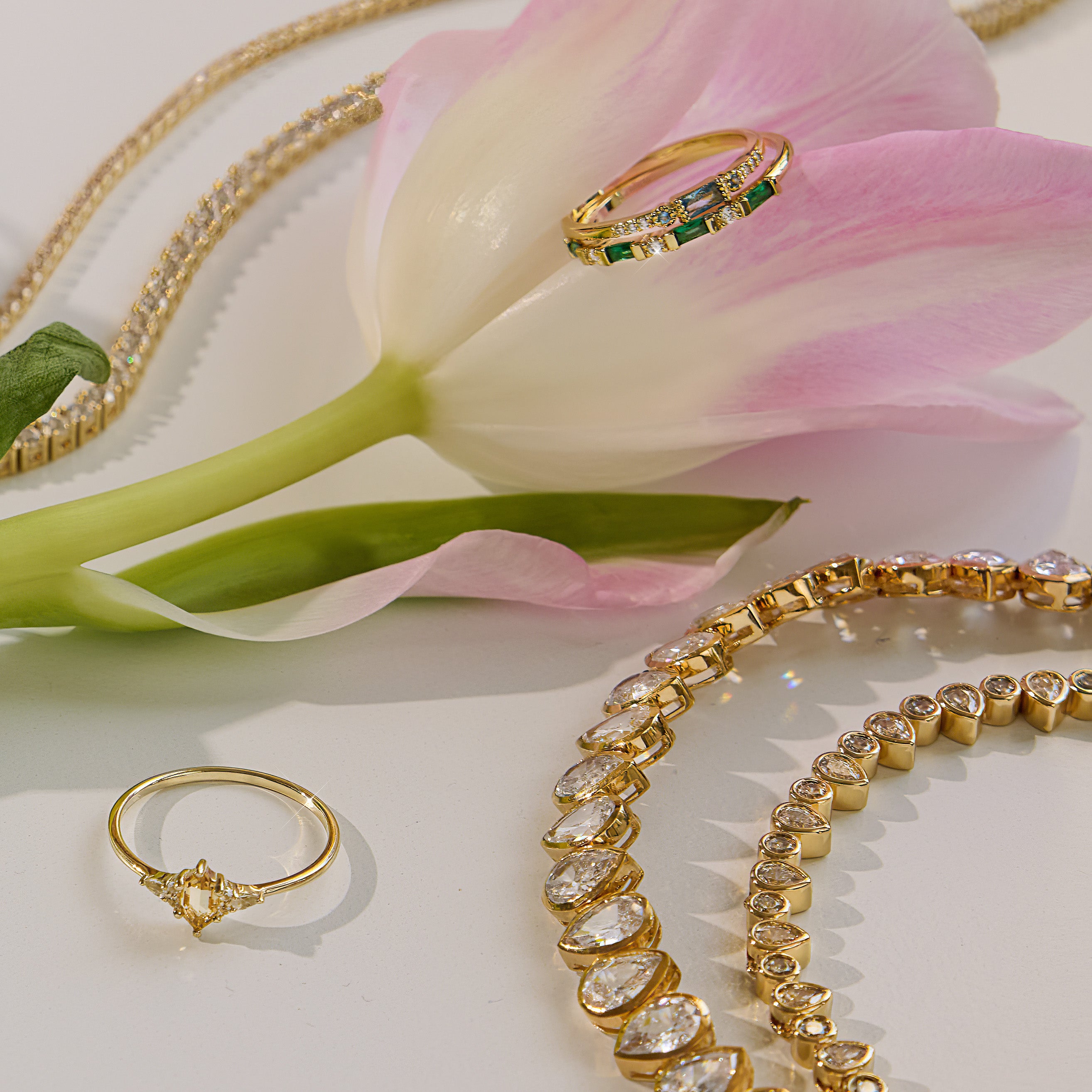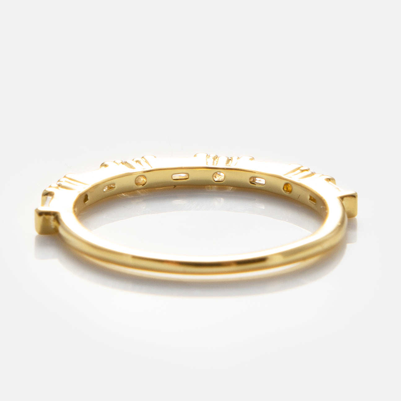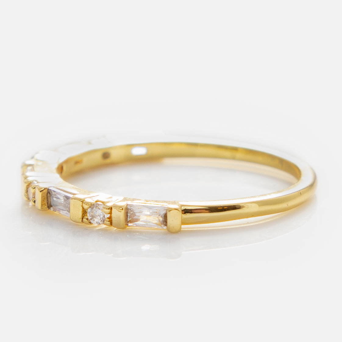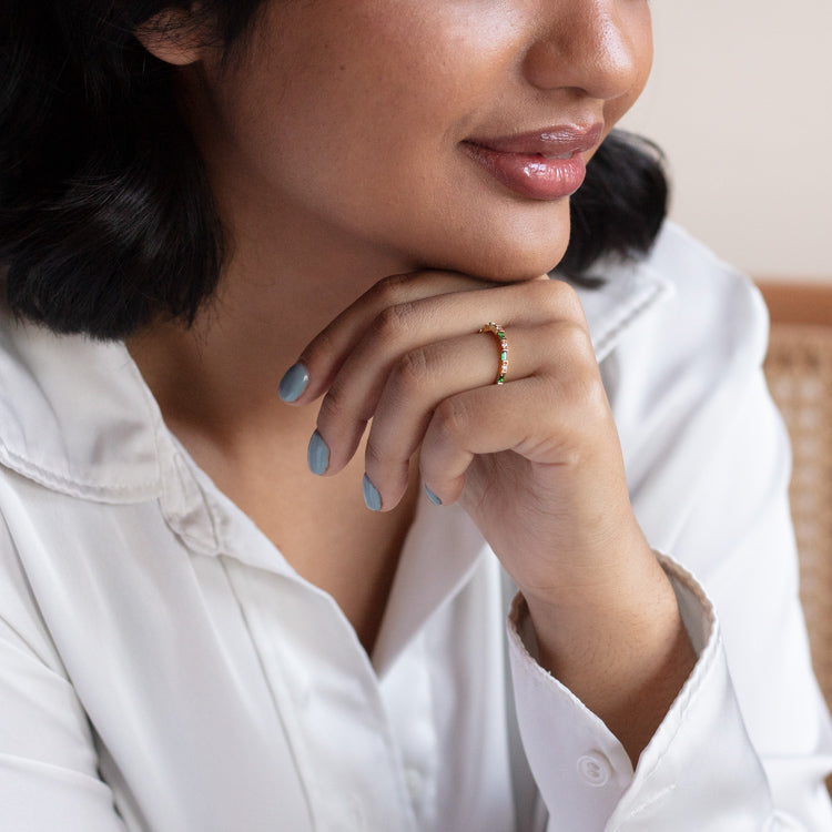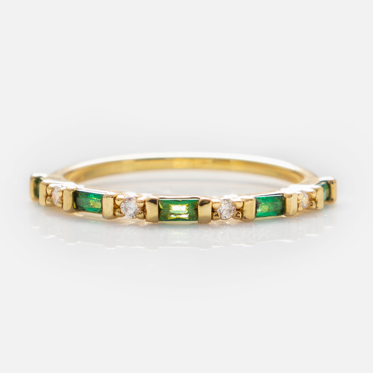 Shine as bright as the light at the end of Daisy's dock with this sparkling ring with green or white cubic zirconia along a 14k yellow gold plated band.