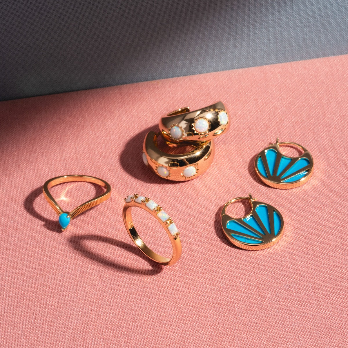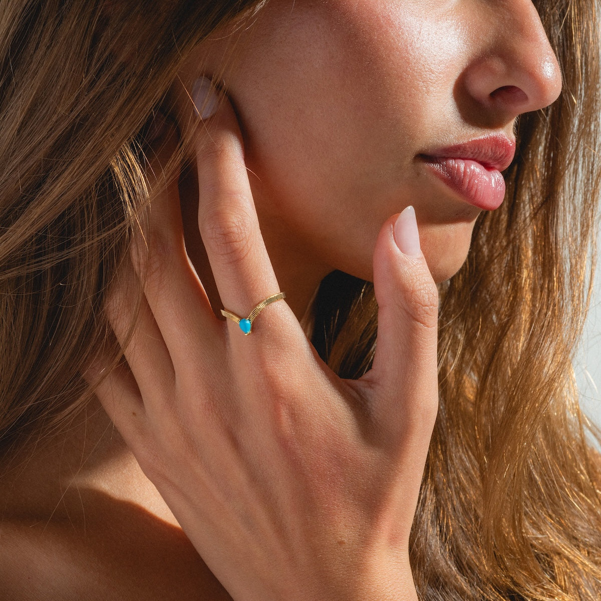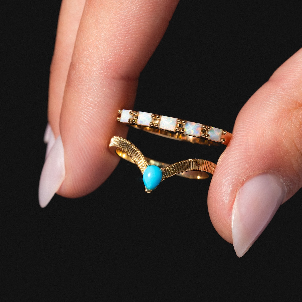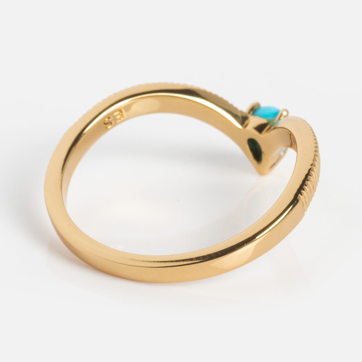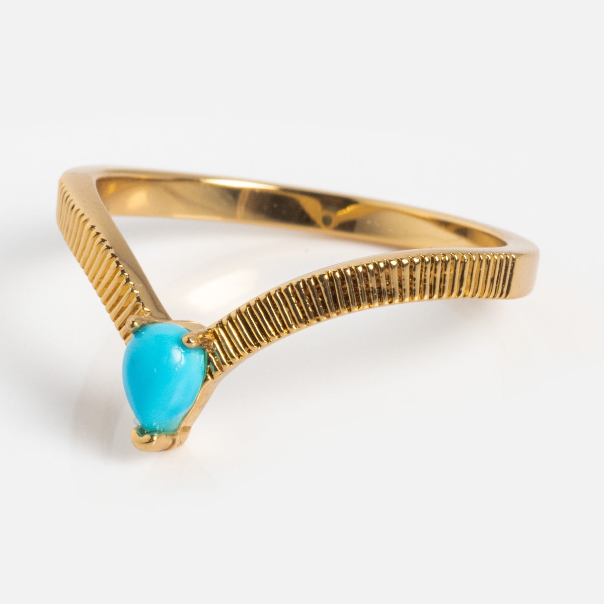 A little something blue that packs an elegant punch. The Gem Drop Textured Stacking Ring features a beautifully textured arched band adorned with a teardrop turquoise stone - perfect for adding a delicate but stunning pop of color to any ring stack.