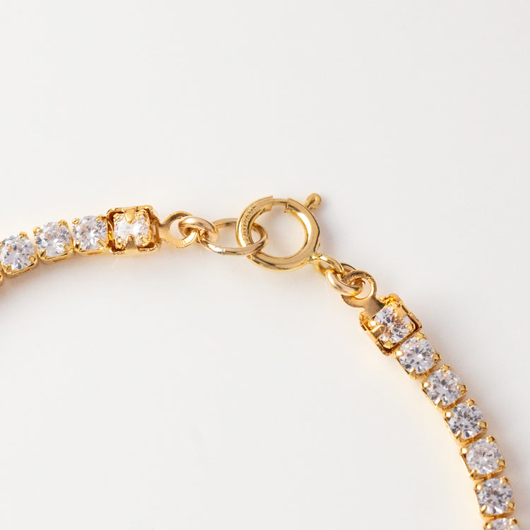 The perfect affordable tennis bracelet! Sparkling cubic zirconia dazzles your wrist on this simply stunning yellow gold or silver band.