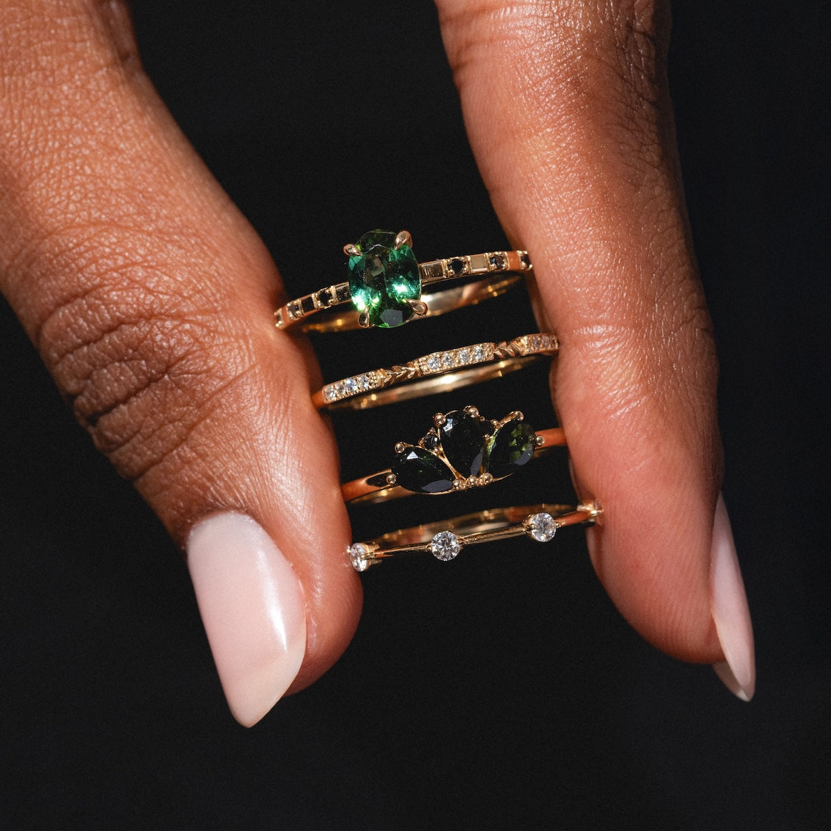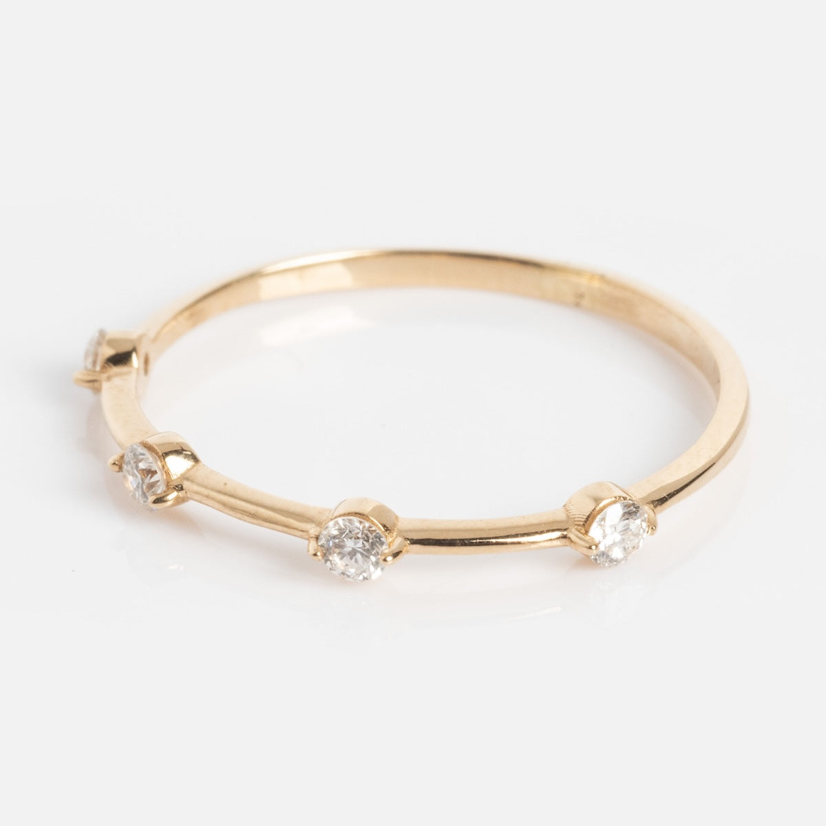 Munro is the name given to any Scottish mountain standing over 3.000 feet tall. Like their namesake. each sparkling diamond on this gorgeously delicate 14k ring stands. steadfast and significant. Wear alone for a subtle yet striking accent. or combine with other rings to add an elegant sparkle to you stack.
