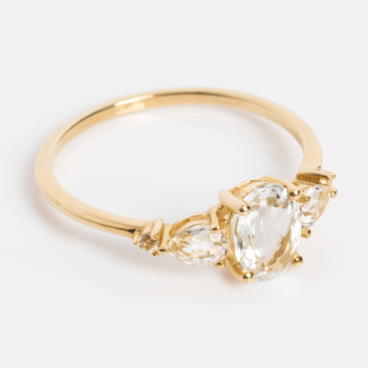 - White topaz center stone 7 mm x 5 mm