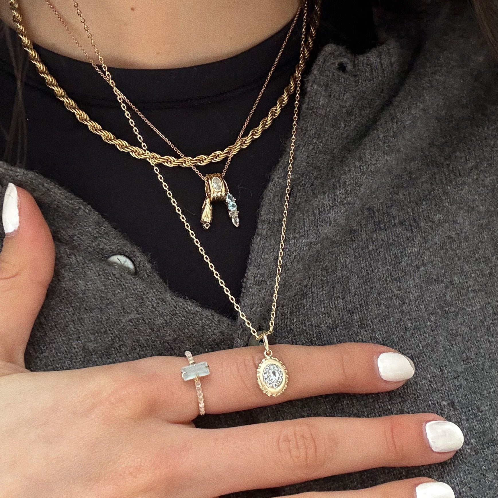 Celebrate your or someone special's March birthday in elegance with the ultimate aquamarine jewelry set. Featuring March's unique statement designs with glowing aquamarine gemstones. this heirloom quality solid gold set includes both limited edition 2026 Birthstone Capsule pieces. our bestselling Solid Gold Sparkle Link Chain and a free Fancy Velvet Ring Box (a $15 value!).