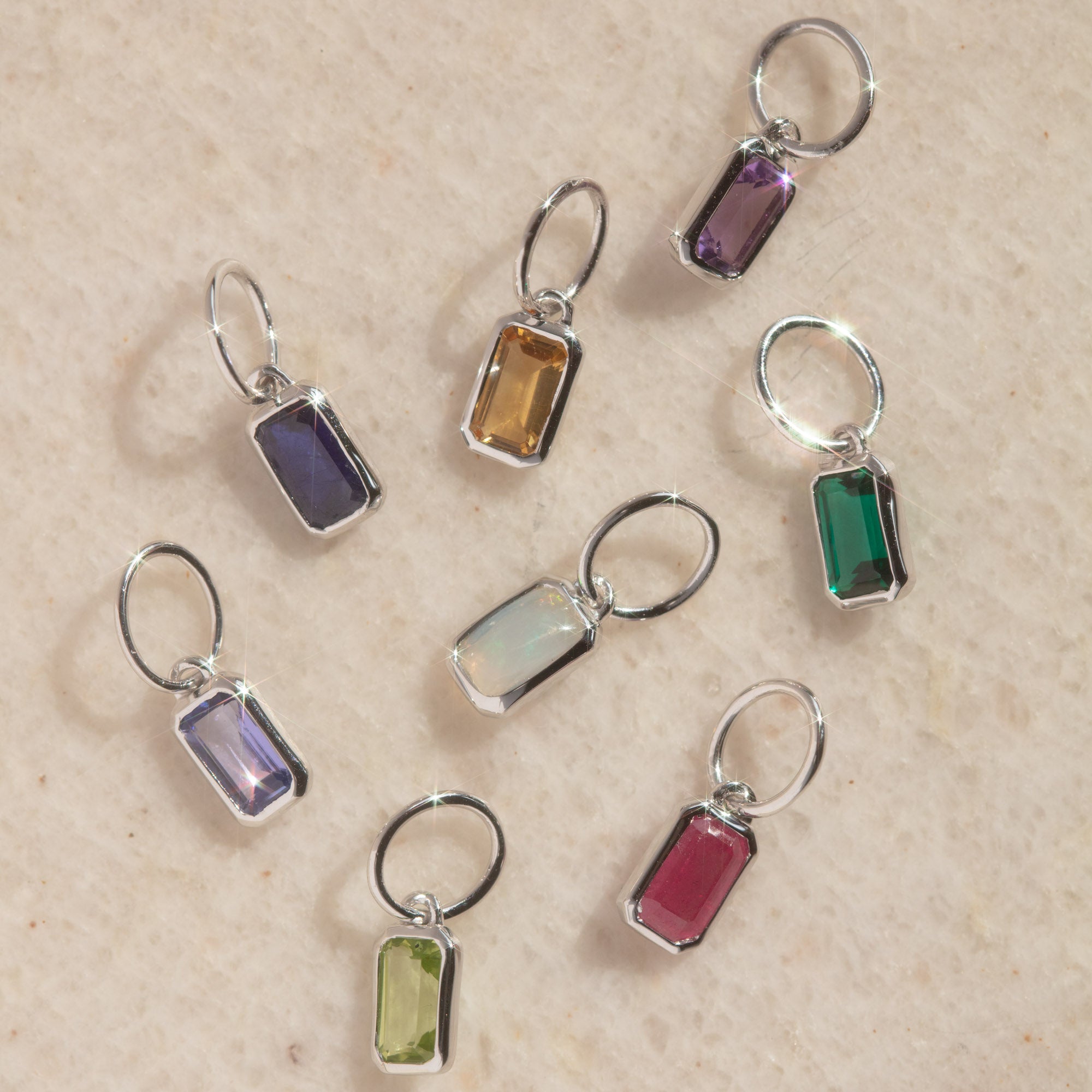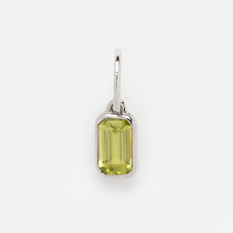 Add a unique touch to any jewelry collection with the Solid Gold Birthstone Baguette Charm in White Gold. This charm allows you to individualize it with a birthstone of your choice. With its dazzling design and personalizable options. this charm is perfect for anyone who wants to express their creativity.