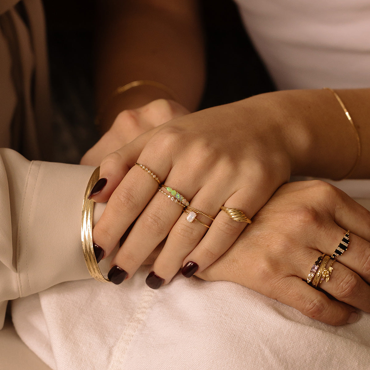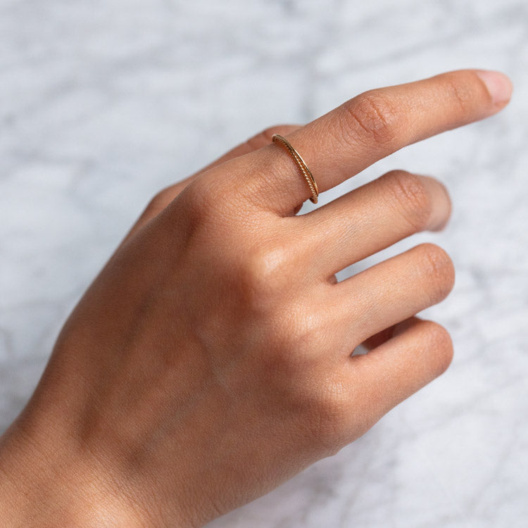 Perfectly paired solid gold crossover rings. These exceptionally delicate bands were designed to crossover one another for a unique look.