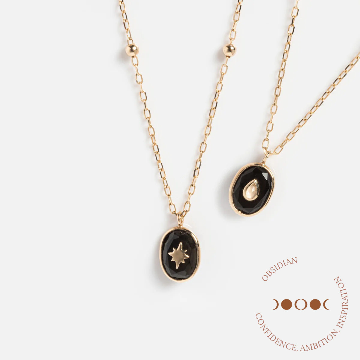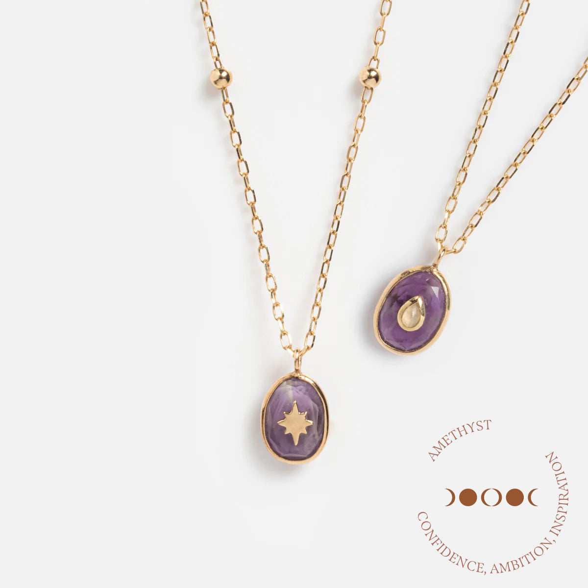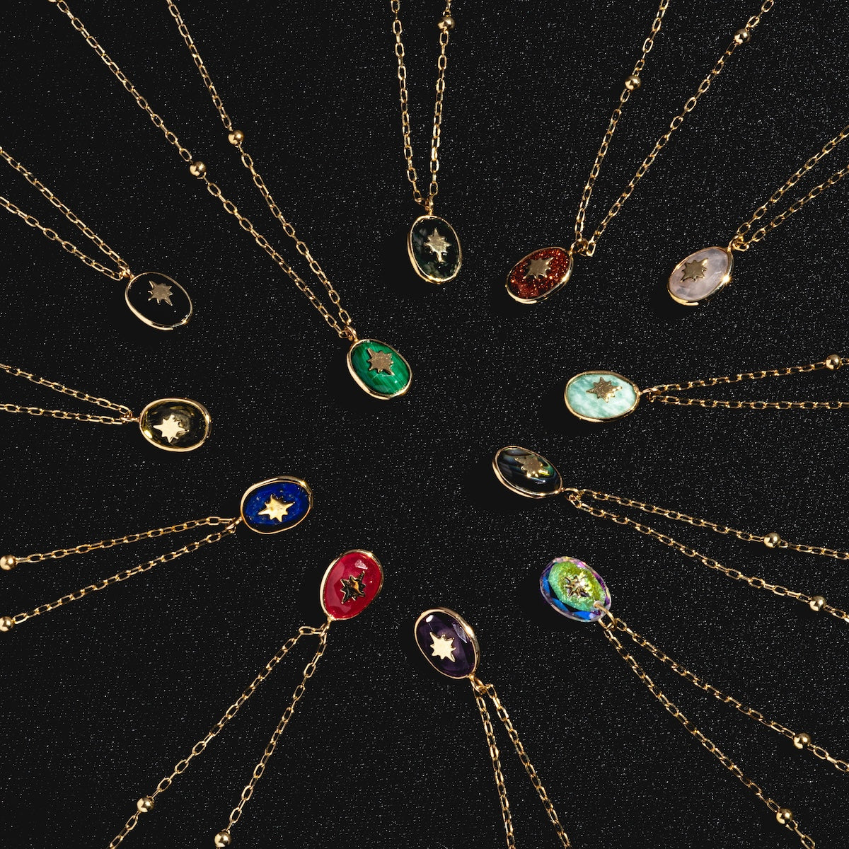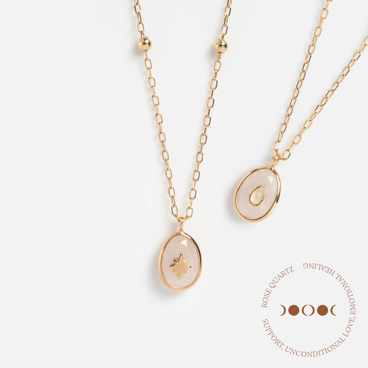 Keep your dearest of intentions close to your heart with the Solid Gold Crystal Amulet Necklace for Manifestation - a new take on the necklace that inspired the Harvest Moon brand. Each crystal pendant features a double-sided design with a starburst. symbolizing wishing on a star. and a blue moonstone. symbolizing intuition. Choose the crystal that holds the most meaning for you and harness its unique properties for manifestation.