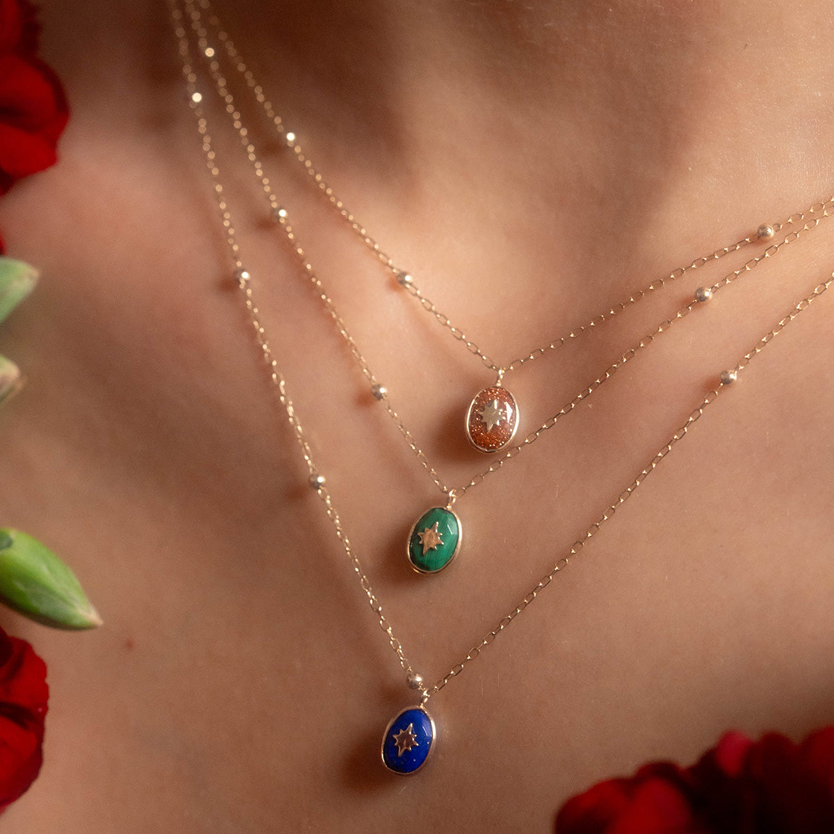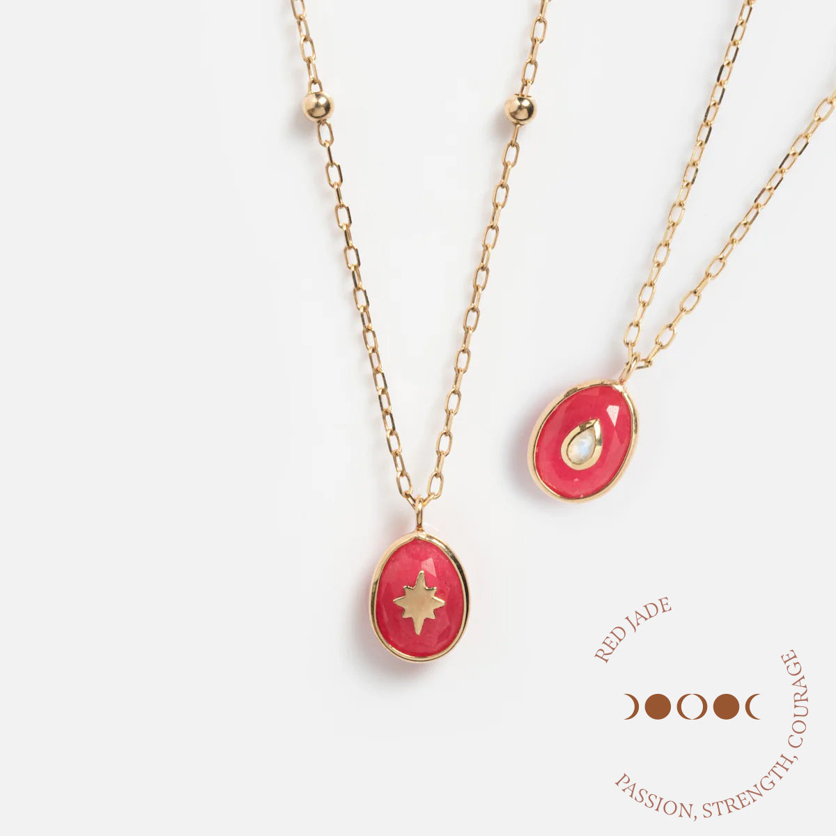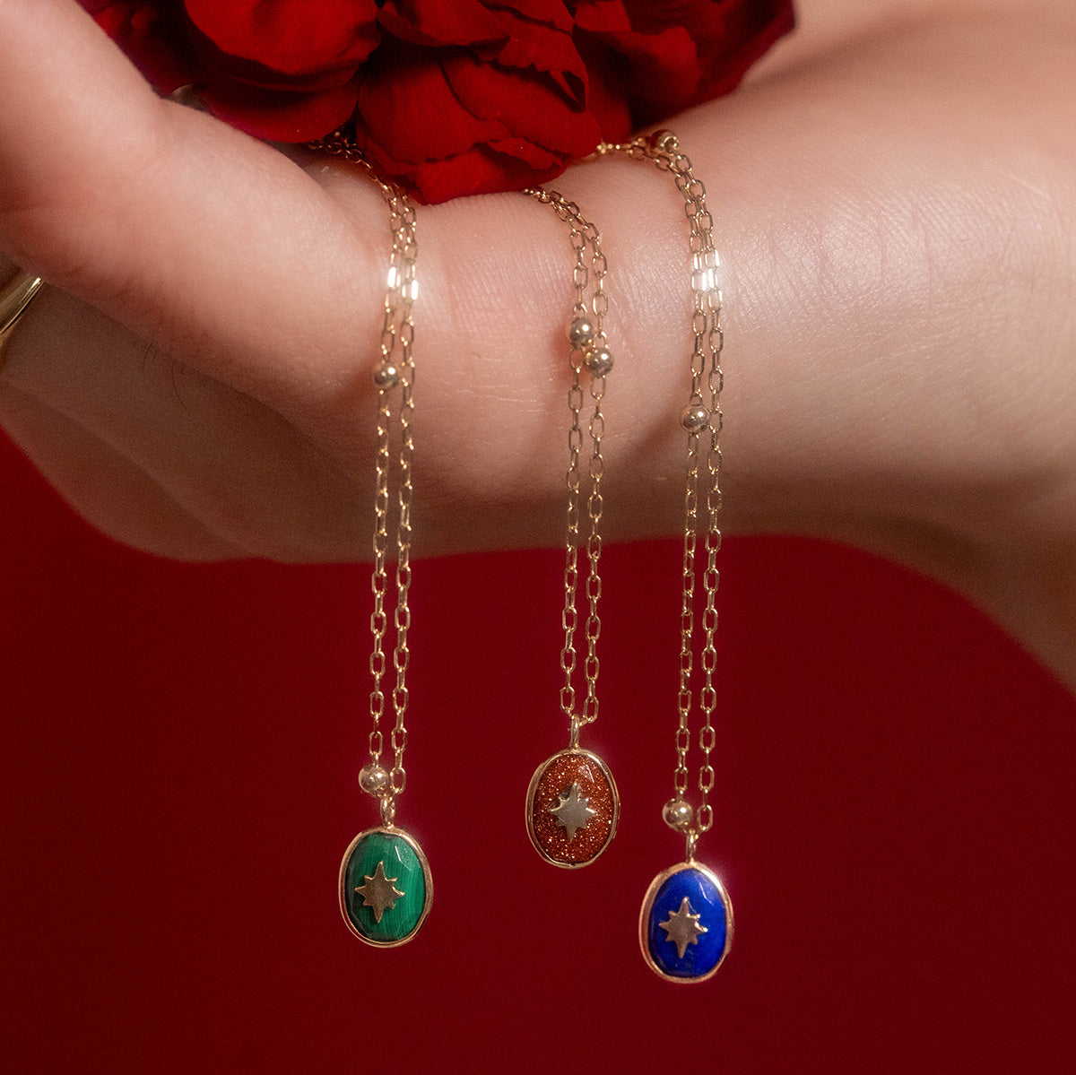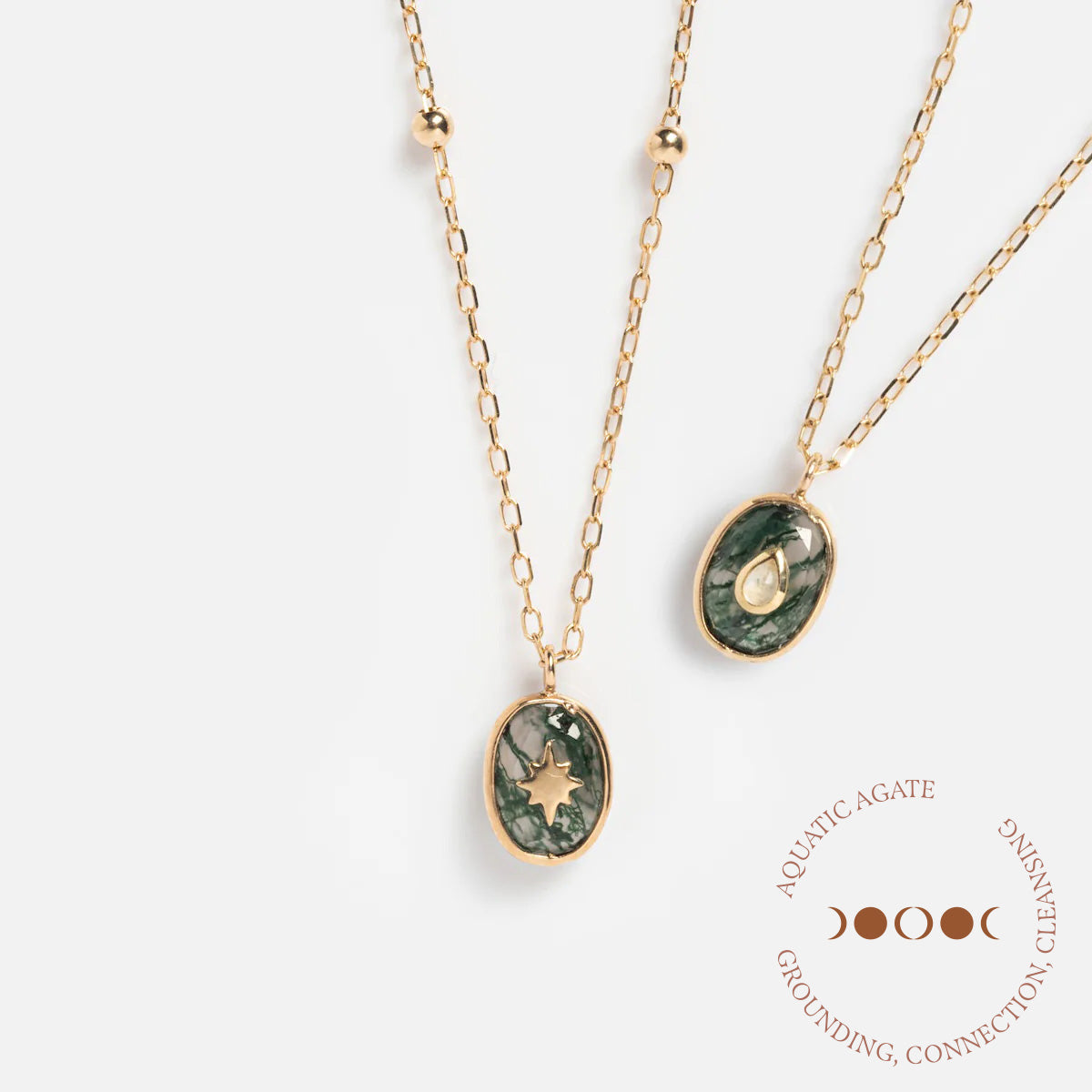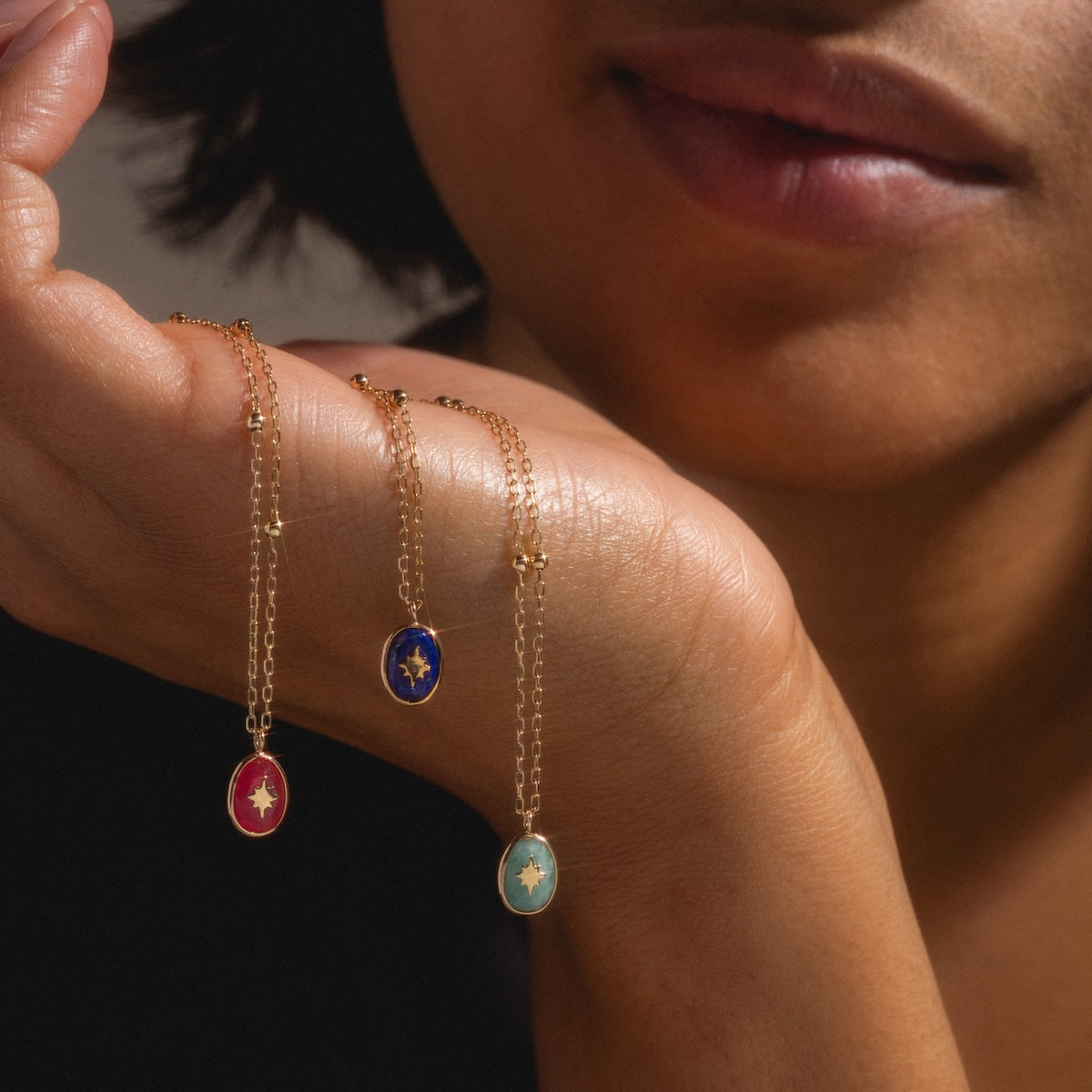 Keep your dearest of intentions close to your heart with the Solid Gold Crystal Amulet Necklace for Manifestation - a new take on the necklace that inspired the Harvest Moon brand. Each crystal pendant features a double-sided design with a starburst. symbolizing wishing on a star. and a blue moonstone. symbolizing intuition. Choose the crystal that holds the most meaning for you and harness its unique properties for manifestation.