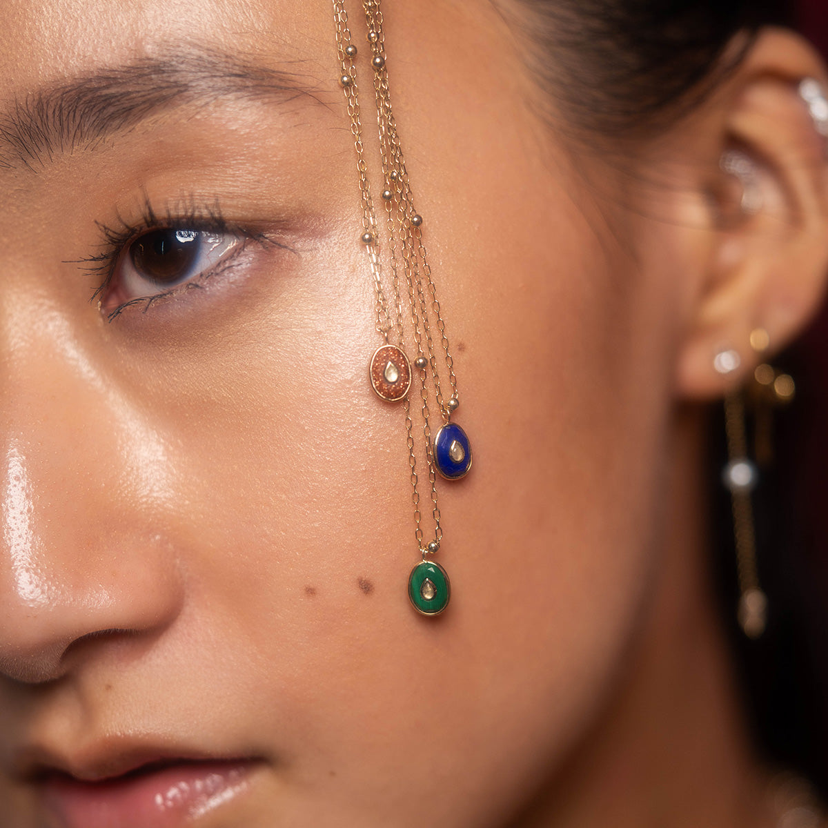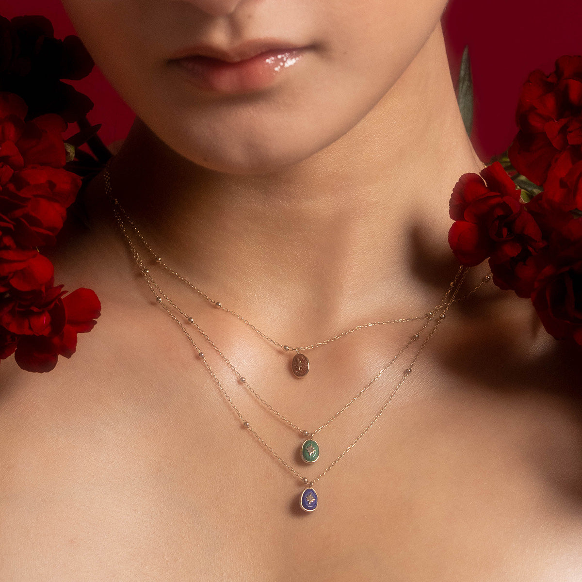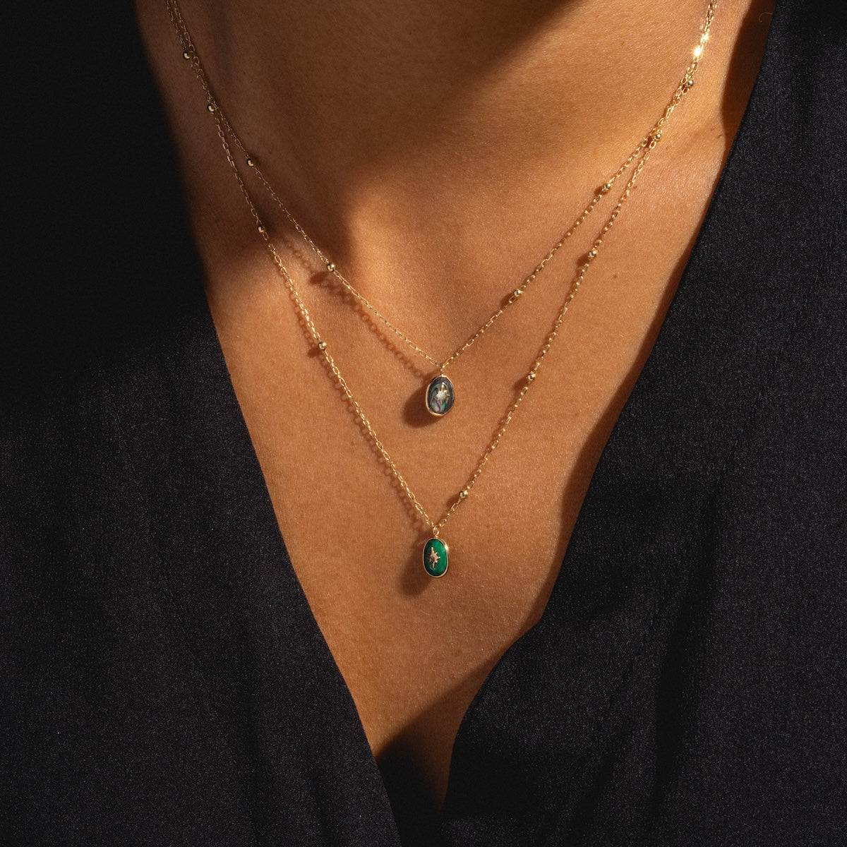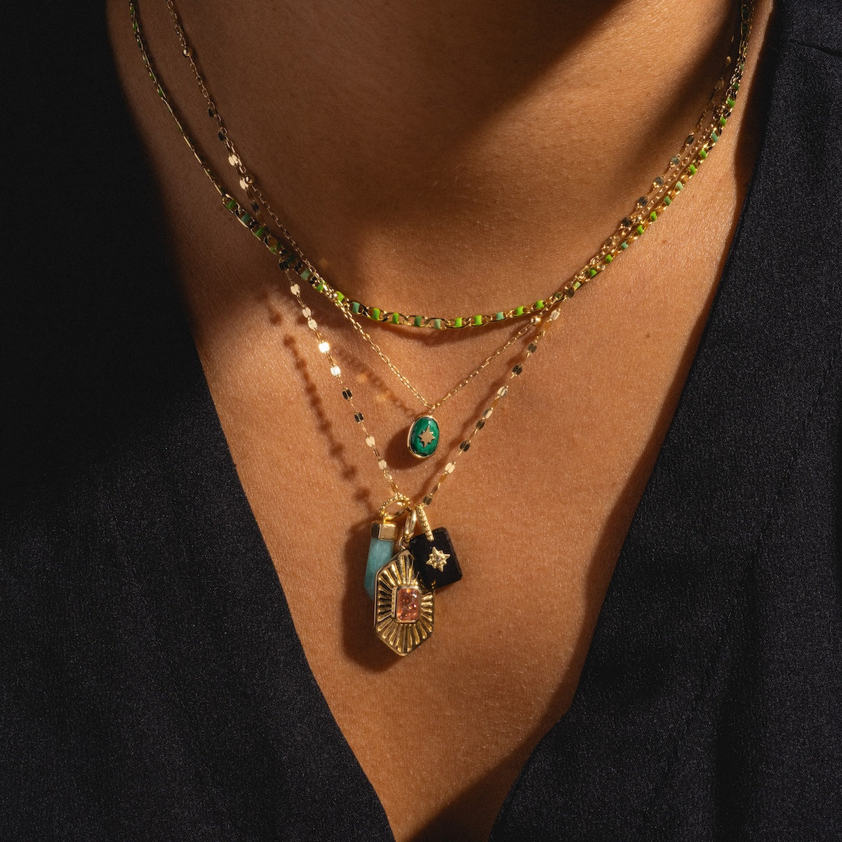 Keep your dearest of intentions close to your heart with the Solid Gold Crystal Amulet Necklace for Manifestation - a new take on the necklace that inspired the Harvest Moon brand. Each crystal pendant features a double-sided design with a starburst. symbolizing wishing on a star. and a blue moonstone. symbolizing intuition. Choose the crystal that holds the most meaning for you and harness its unique properties for manifestation.