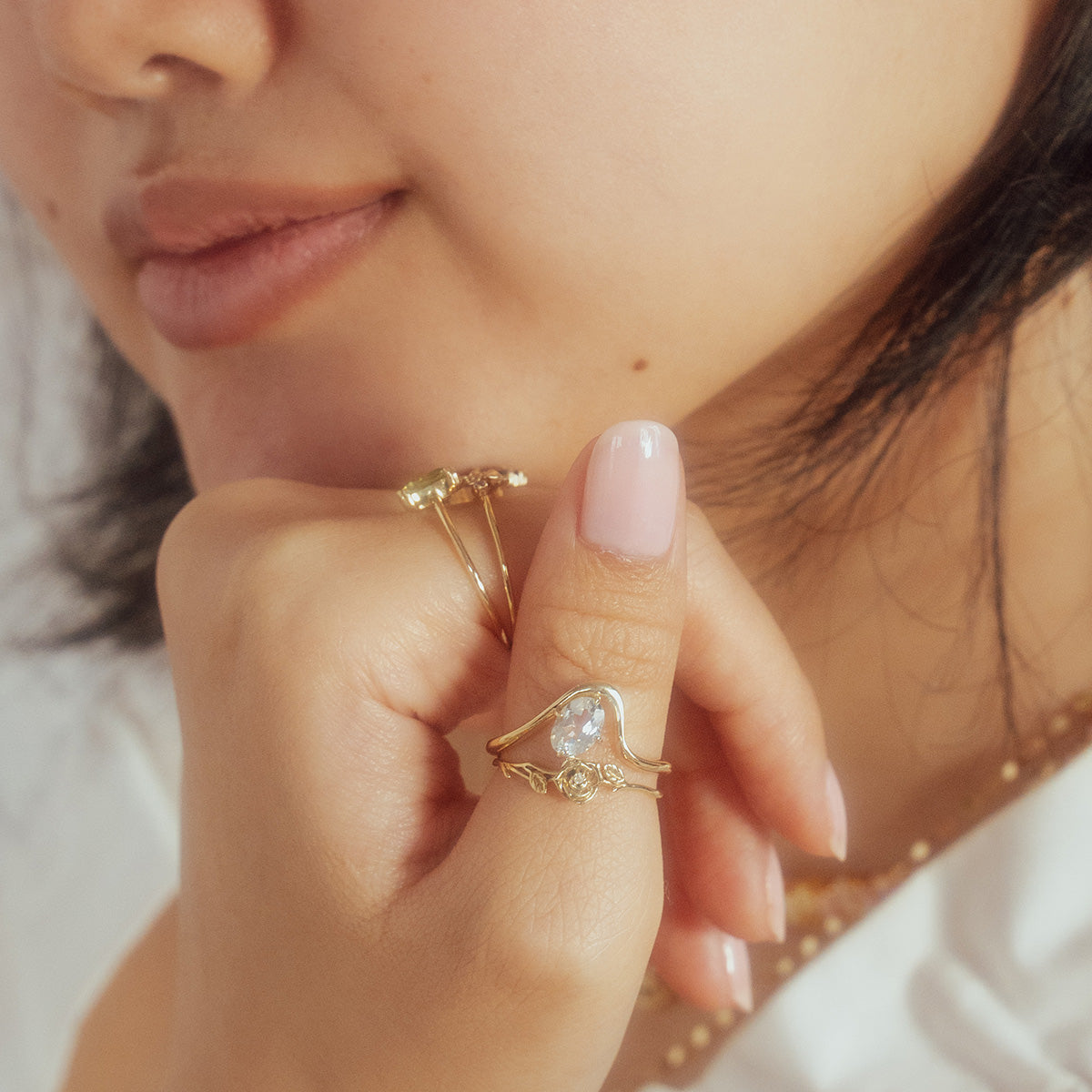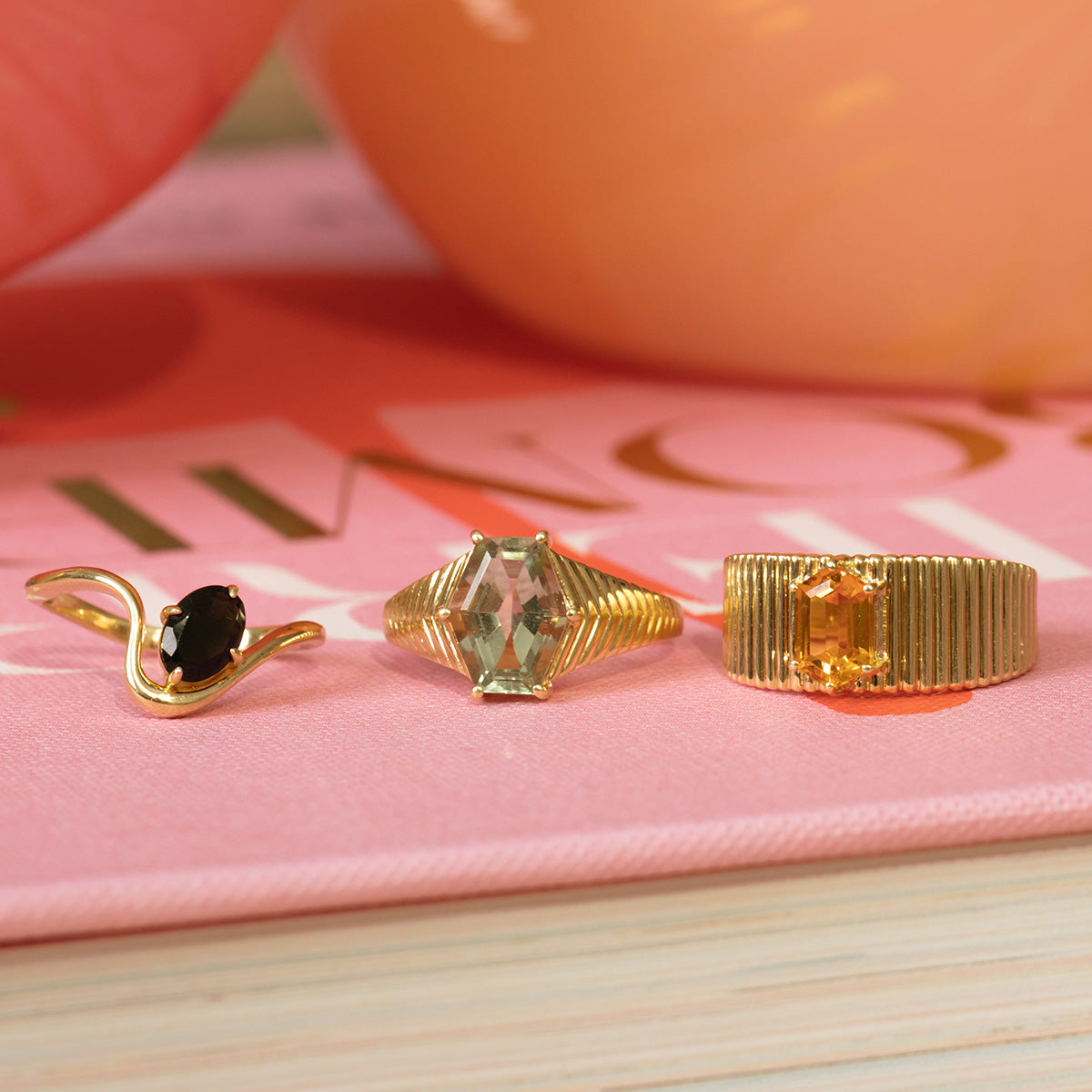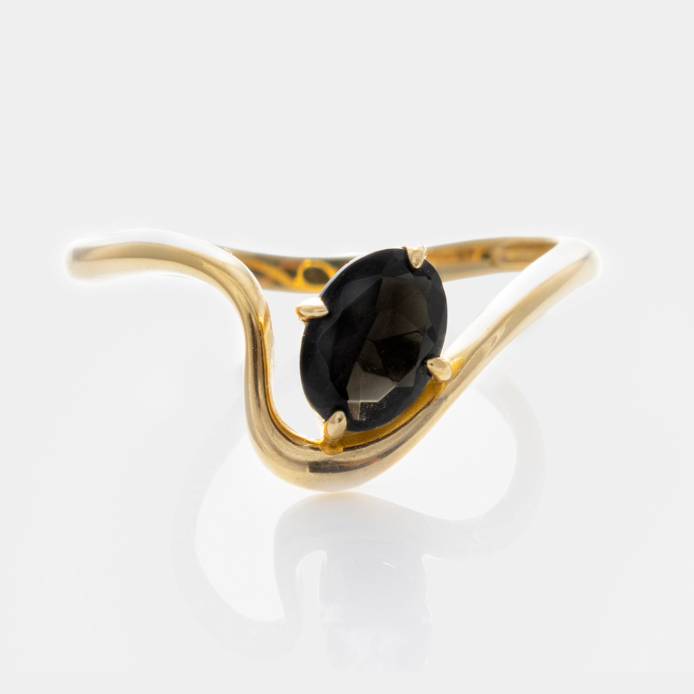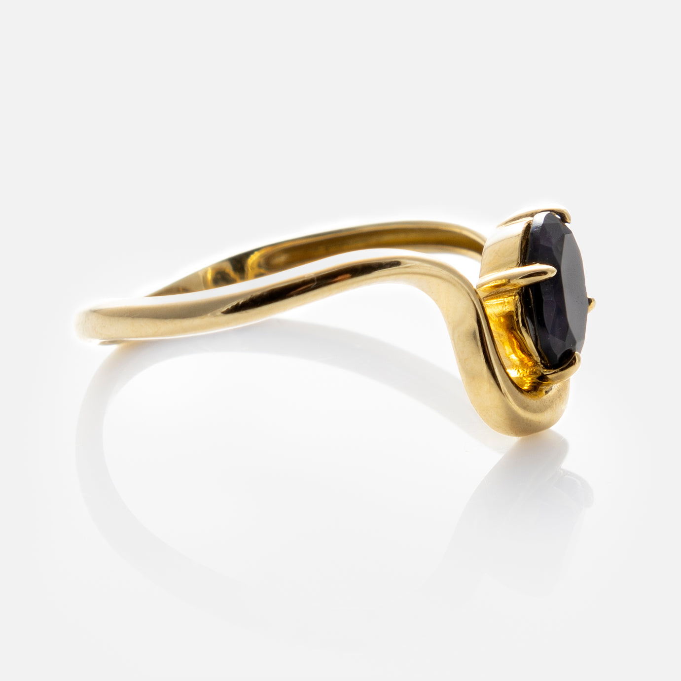 The Solid Gold Floating Gem Ring is elegantly bold. This eye-catching piece features a floating gemstone nestled on a golden curve for a stunning ethereal look - almost like magic.