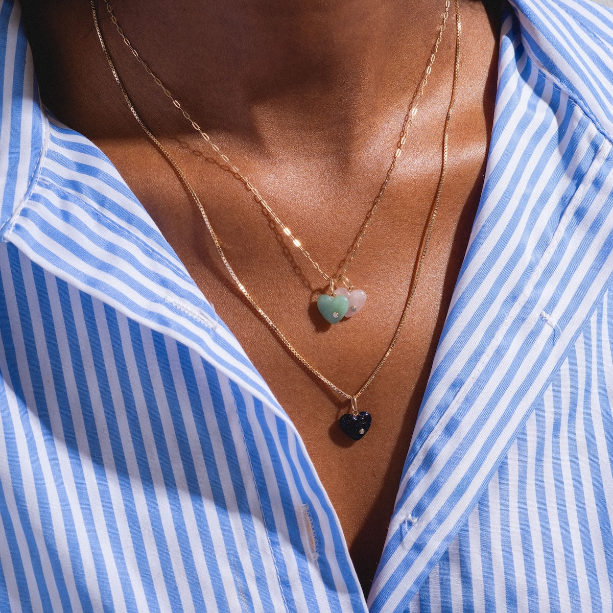Leading every day with a full heart with the Solid Gold Full Heart Crystal Charm. Featuring a gorgeous heart-shaped crystal adorned with a single bezel-set diamond. this delightfully classic piece is the sweetest way to wear your love.