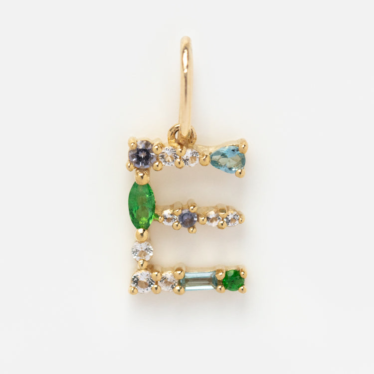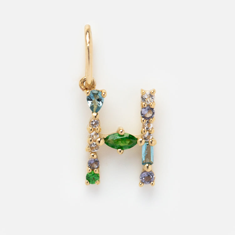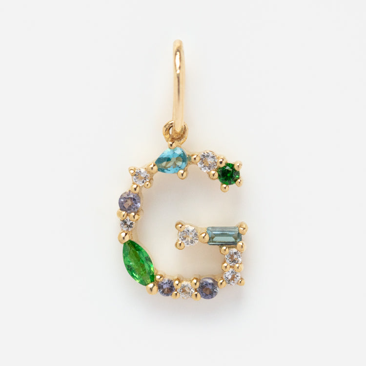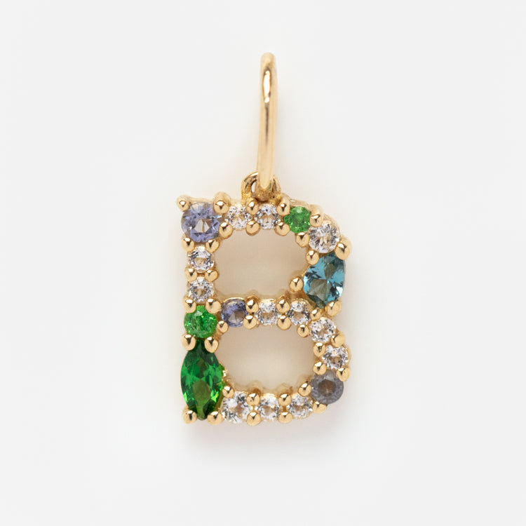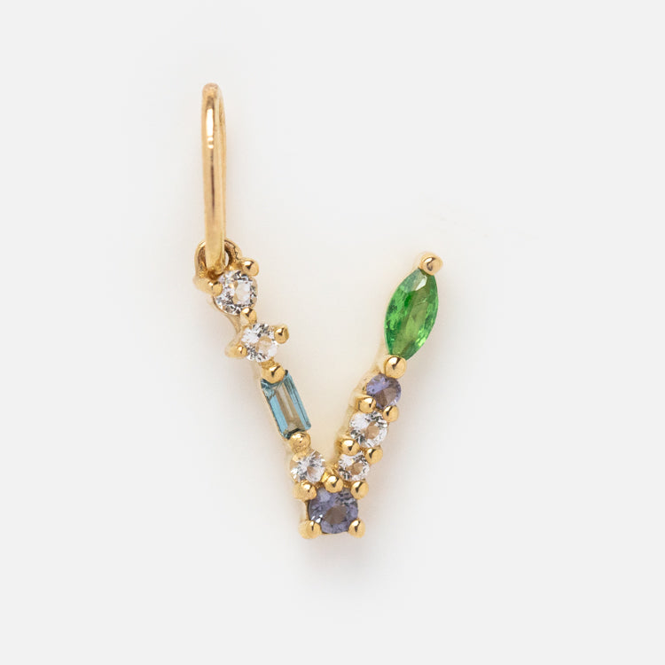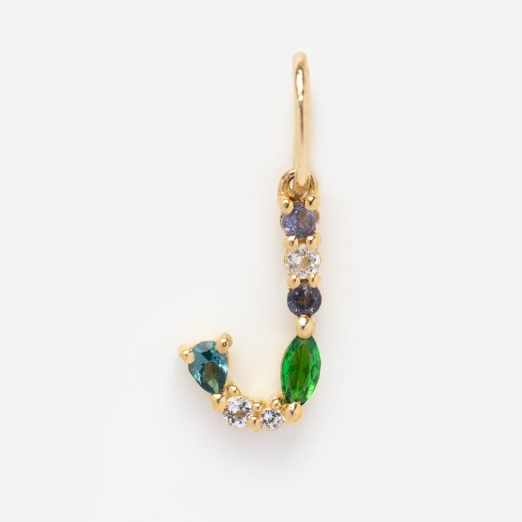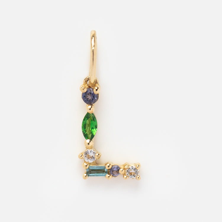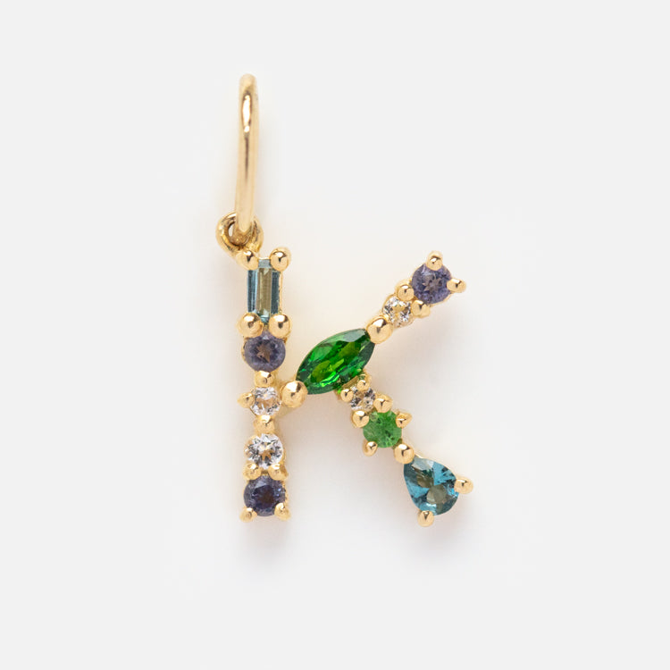 This Solid Gold Gemstone Letter Charm is perfect for adding a personalized touch to your everyday look. Adorned with unique gemstones. each charm is designed to be individual and one-of-a-kind. Showcase your personality and style with this stylish charm.
