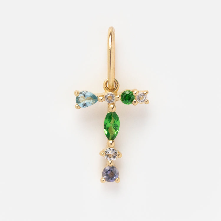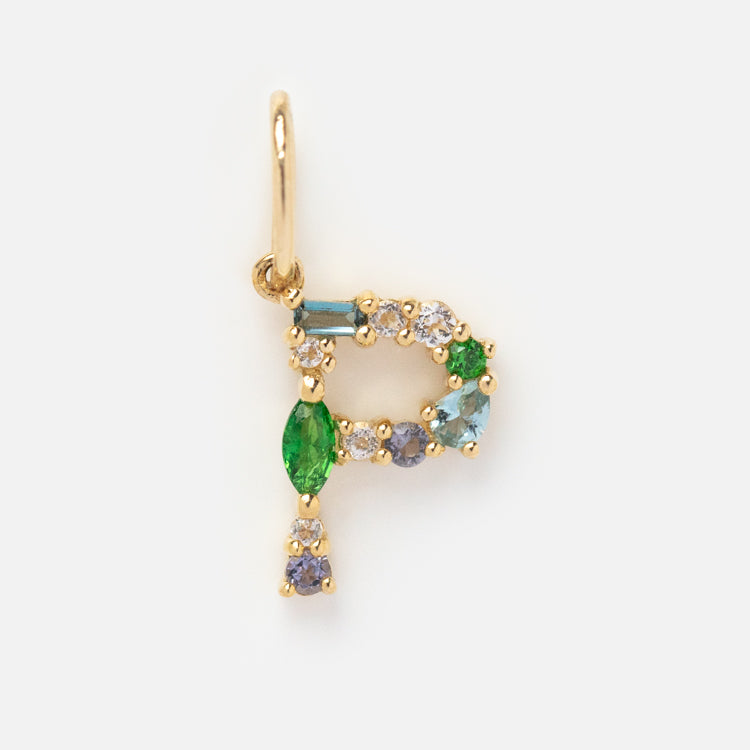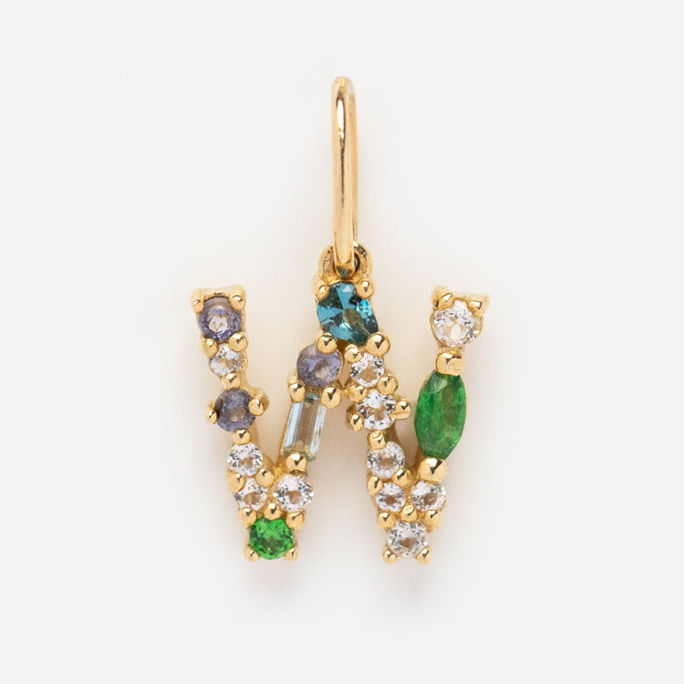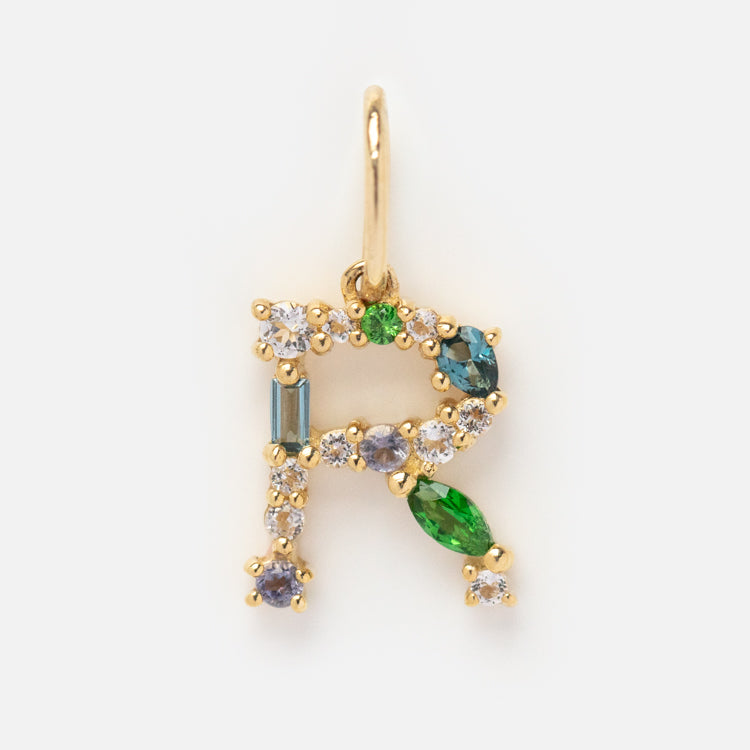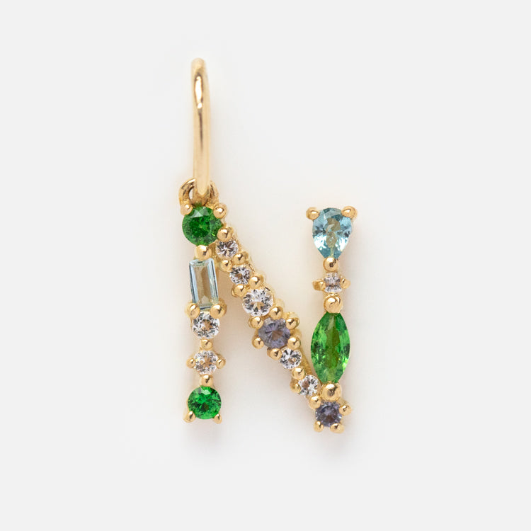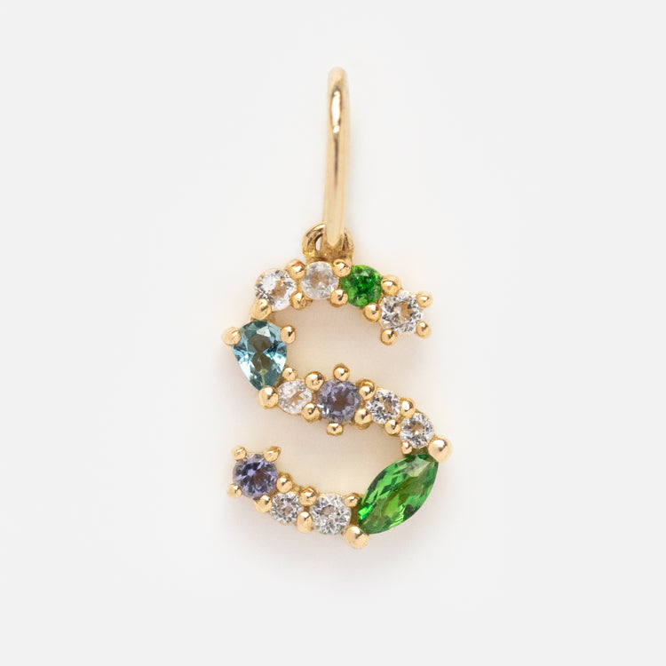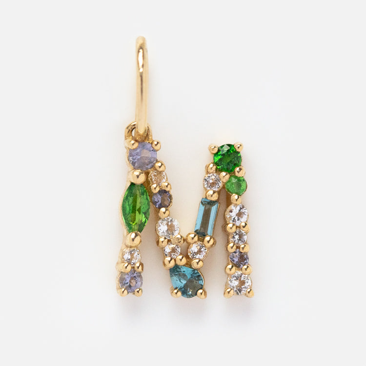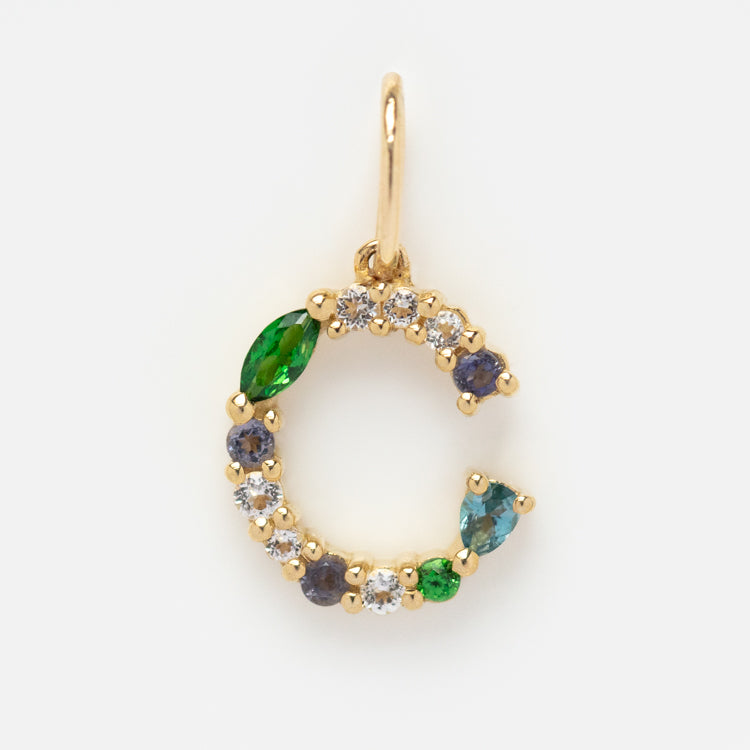 This Solid Gold Gemstone Letter Charm is perfect for adding a personalized touch to your everyday look. Adorned with unique gemstones. each charm is designed to be individual and one-of-a-kind. Showcase your personality and style with this stylish charm.