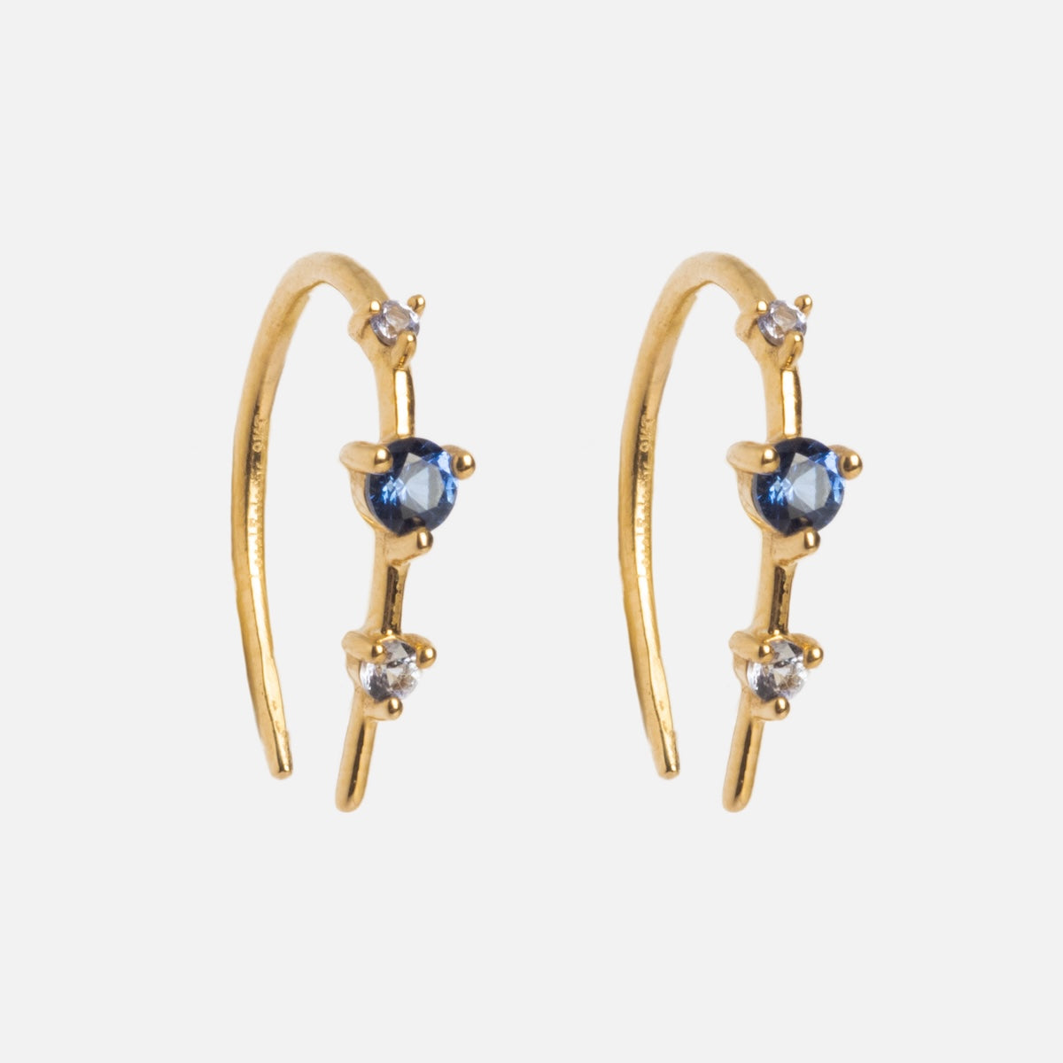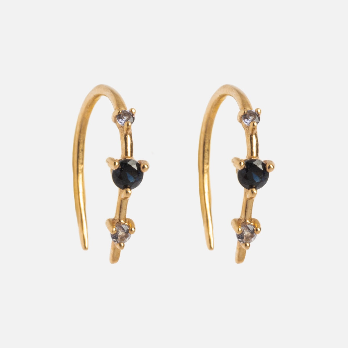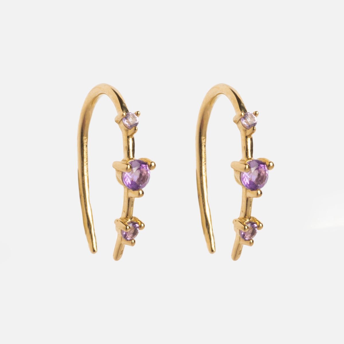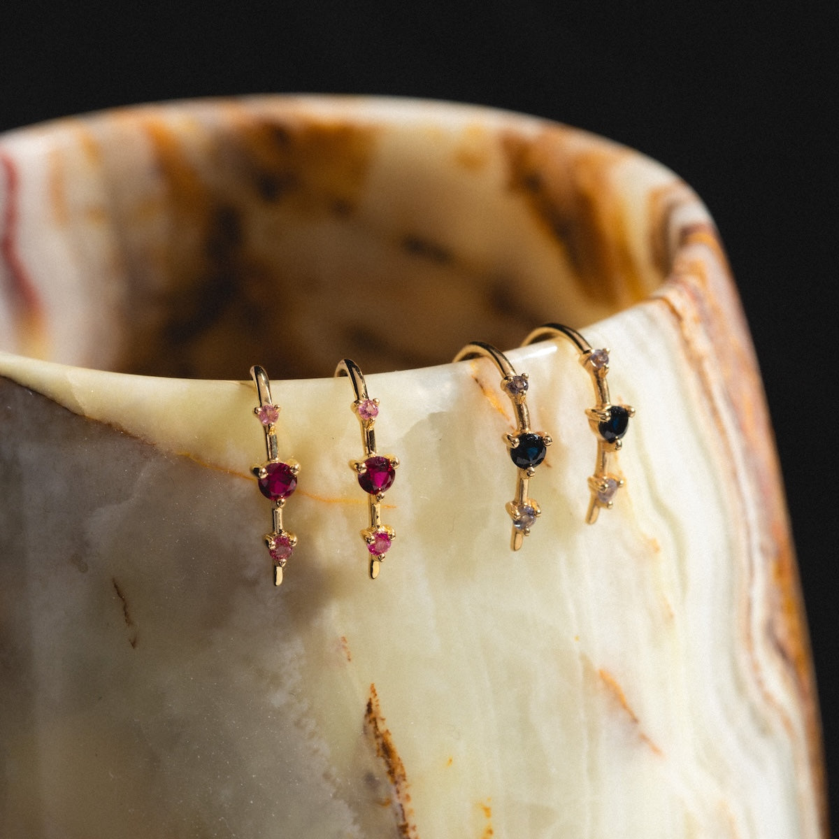 Subtle adornment with major sparkle - the Solid Gold Ombre Birthstone Ear Huggers are a delicate but vividly colorful way to adorn your ears and commemorate your or someone special's birth month. Crafted in solid yellow gold. these super chic huggers feature an elegant three stone design.