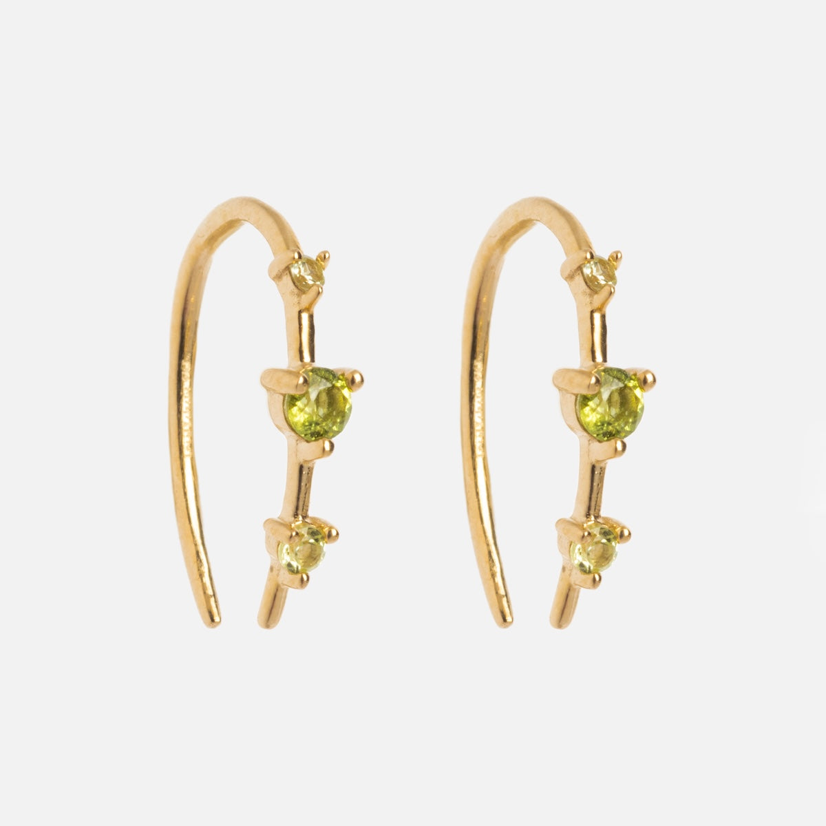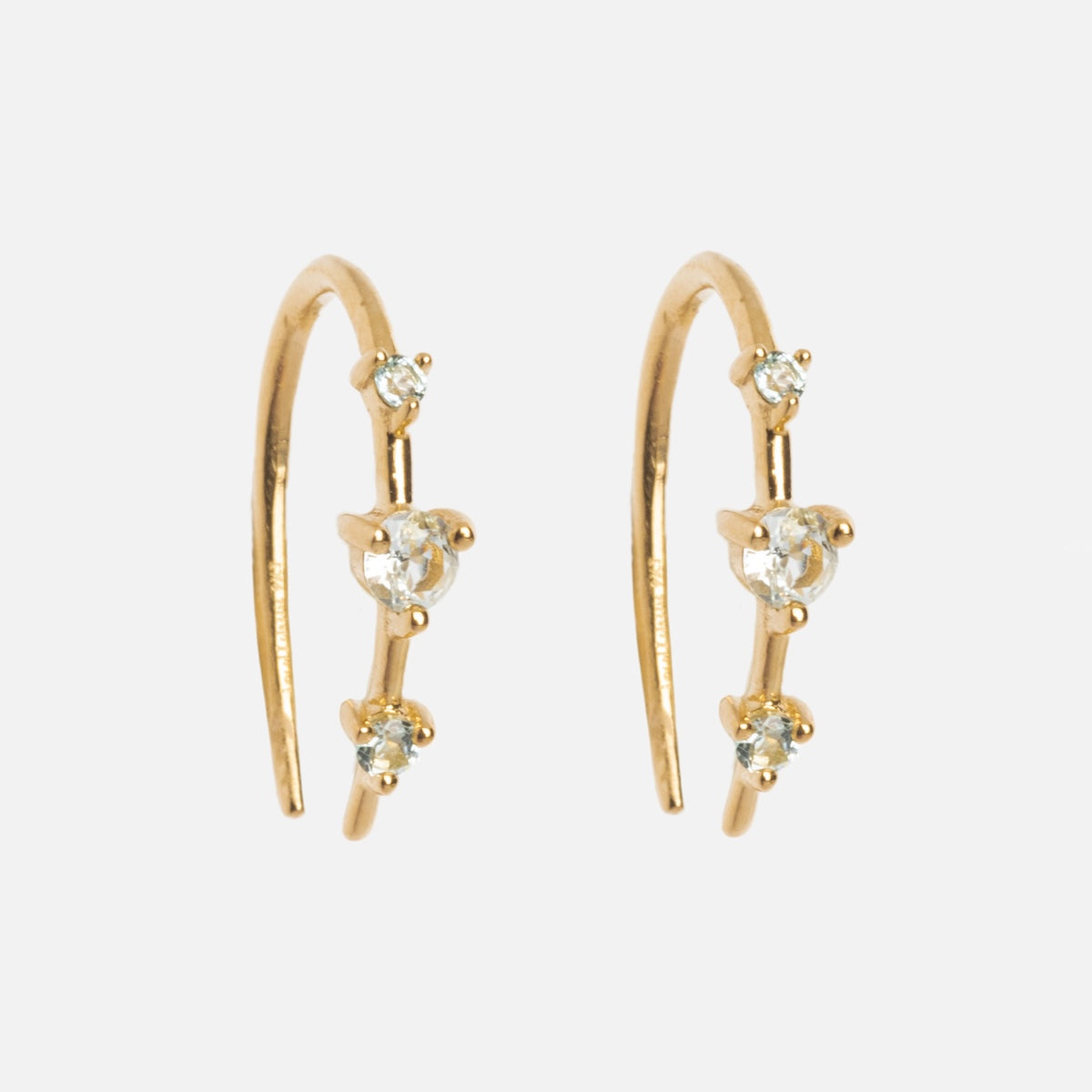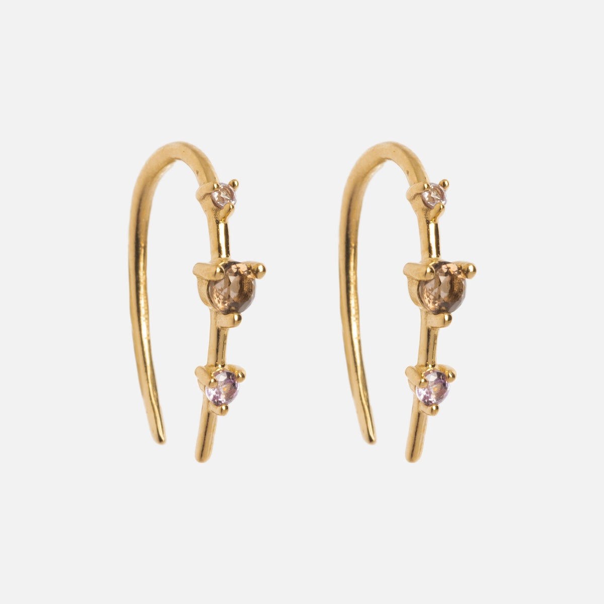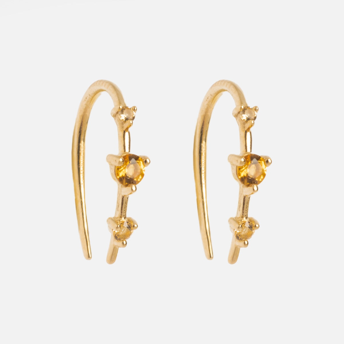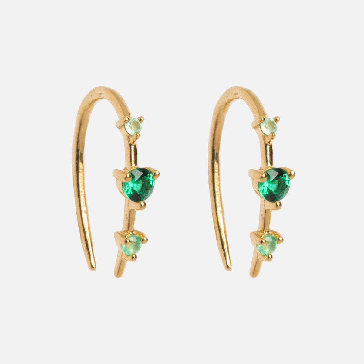 Subtle adornment with major sparkle - the Solid Gold Ombre Birthstone Ear Huggers are a delicate but vividly colorful way to adorn your ears and commemorate your or someone special's birth month. Crafted in solid yellow gold. these super chic huggers feature an elegant three stone design.
