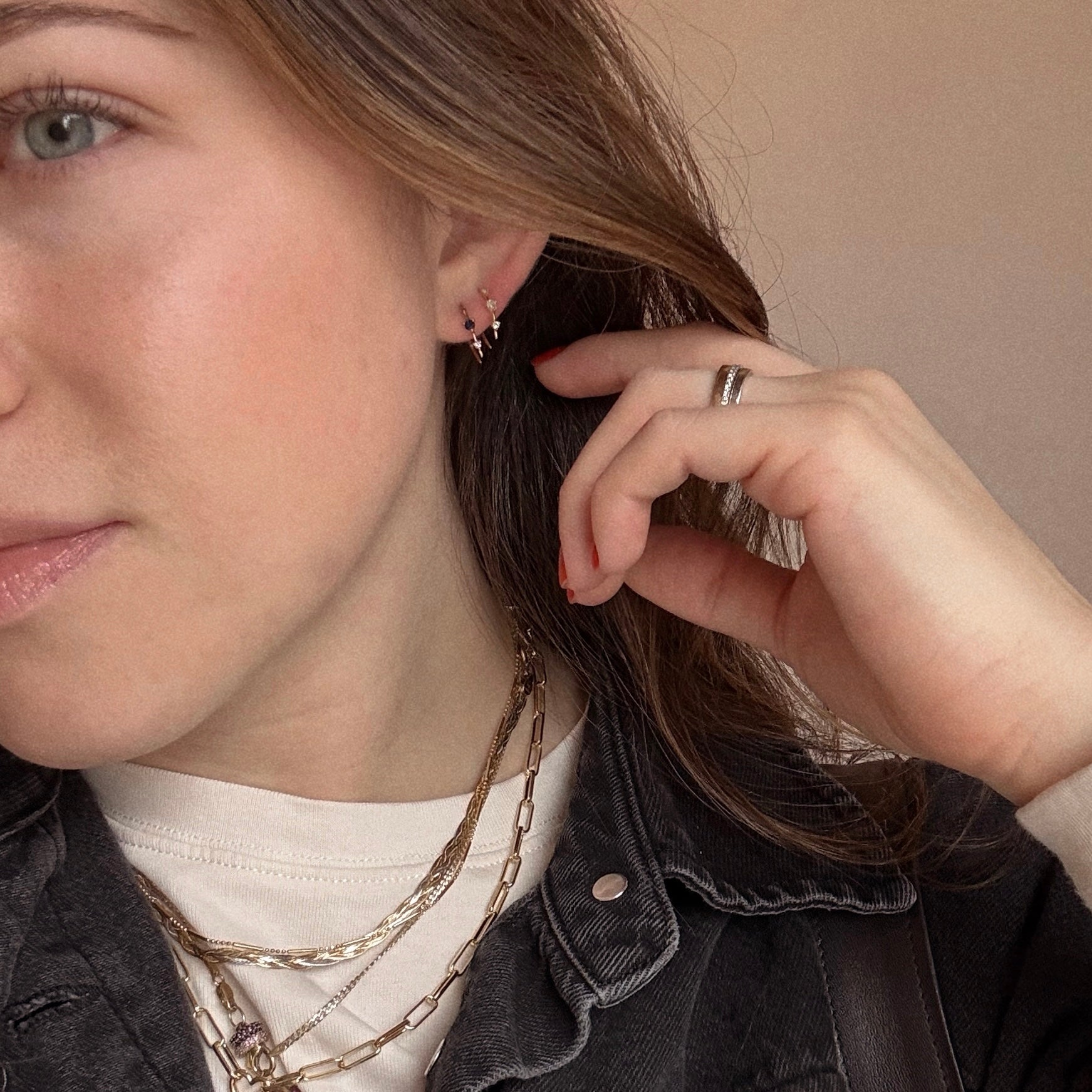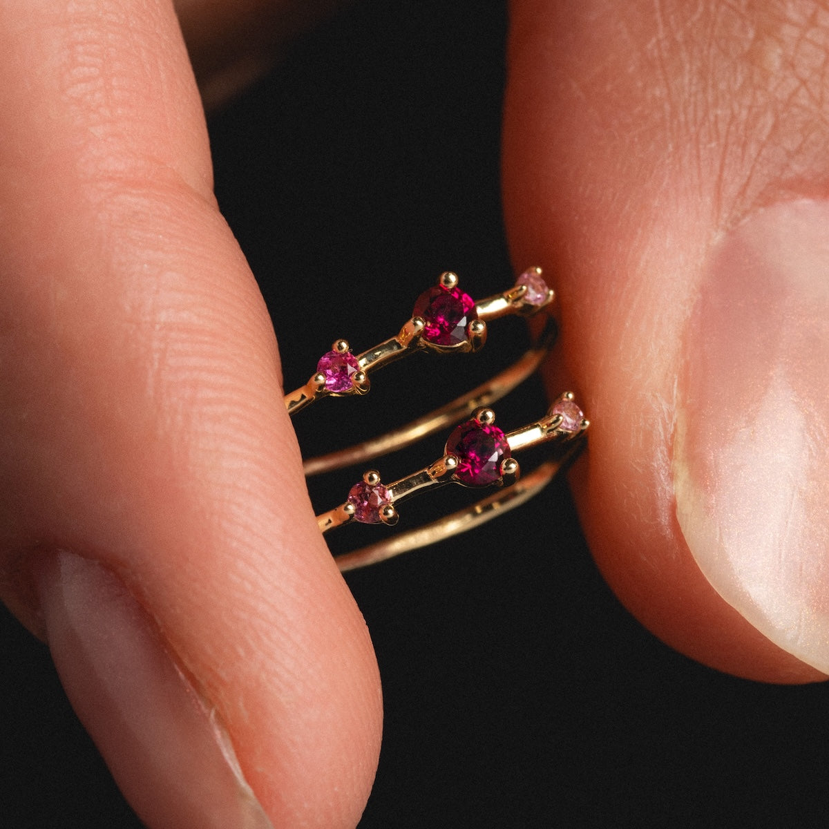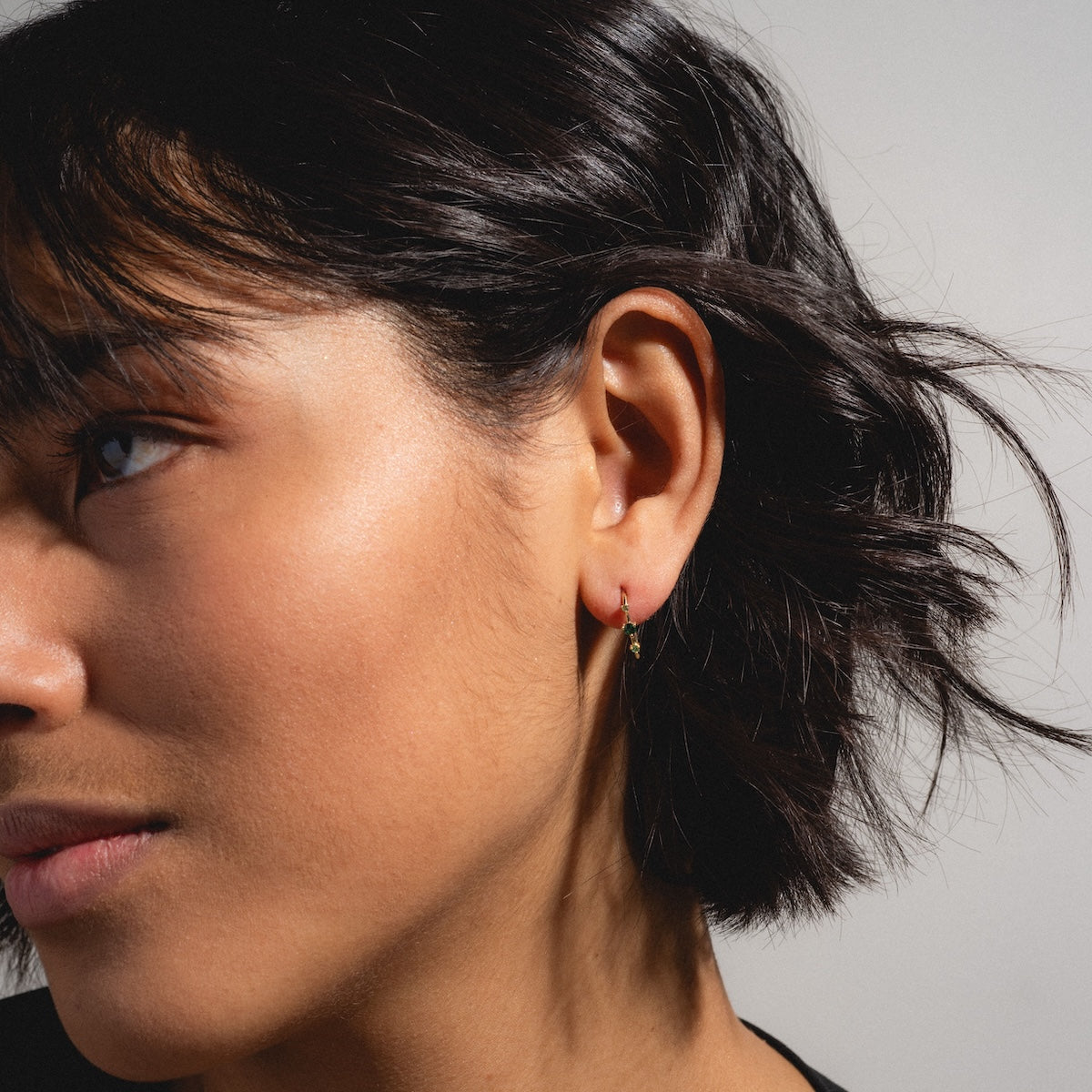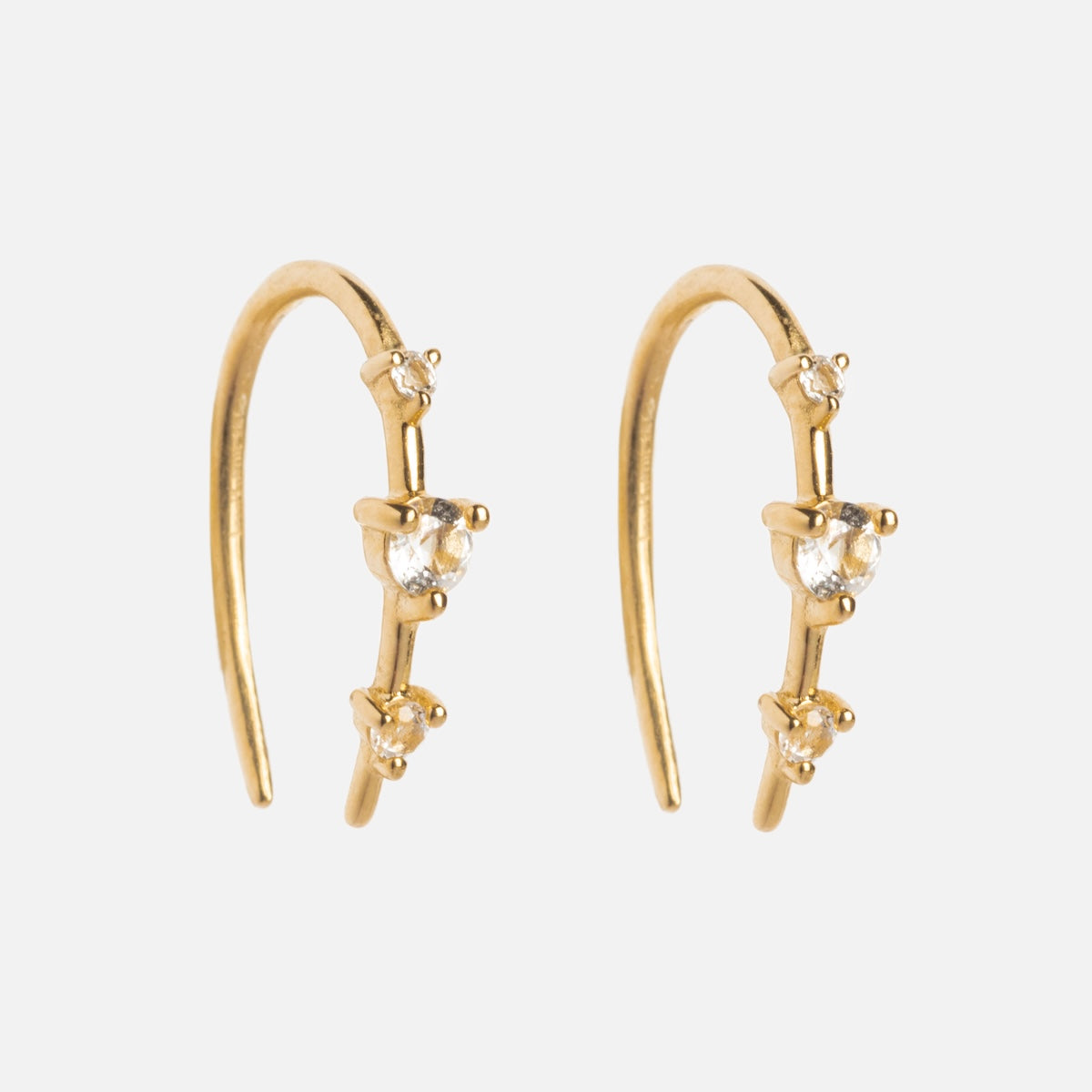 Subtle adornment with major sparkle - the Solid Gold Ombre Birthstone Ear Huggers are a delicate but vividly colorful way to adorn your ears and commemorate your or someone special's birth month. Crafted in solid yellow gold. these super chic huggers feature an elegant three stone design.