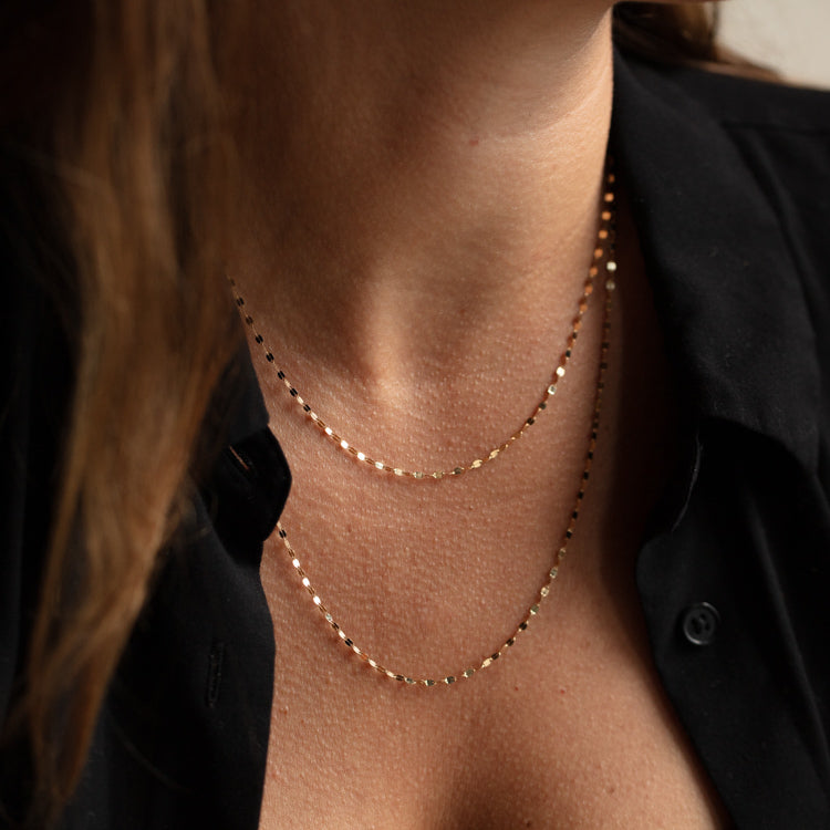An abundance of sparkle that will keep you being the center of attention. This classic everyday Solid Gold Sparkle Link Chain is the perfect addition for those that want to stand out with a timeless accessory. Choose from two different lengths and two different metals to match your style. Shine bright!
