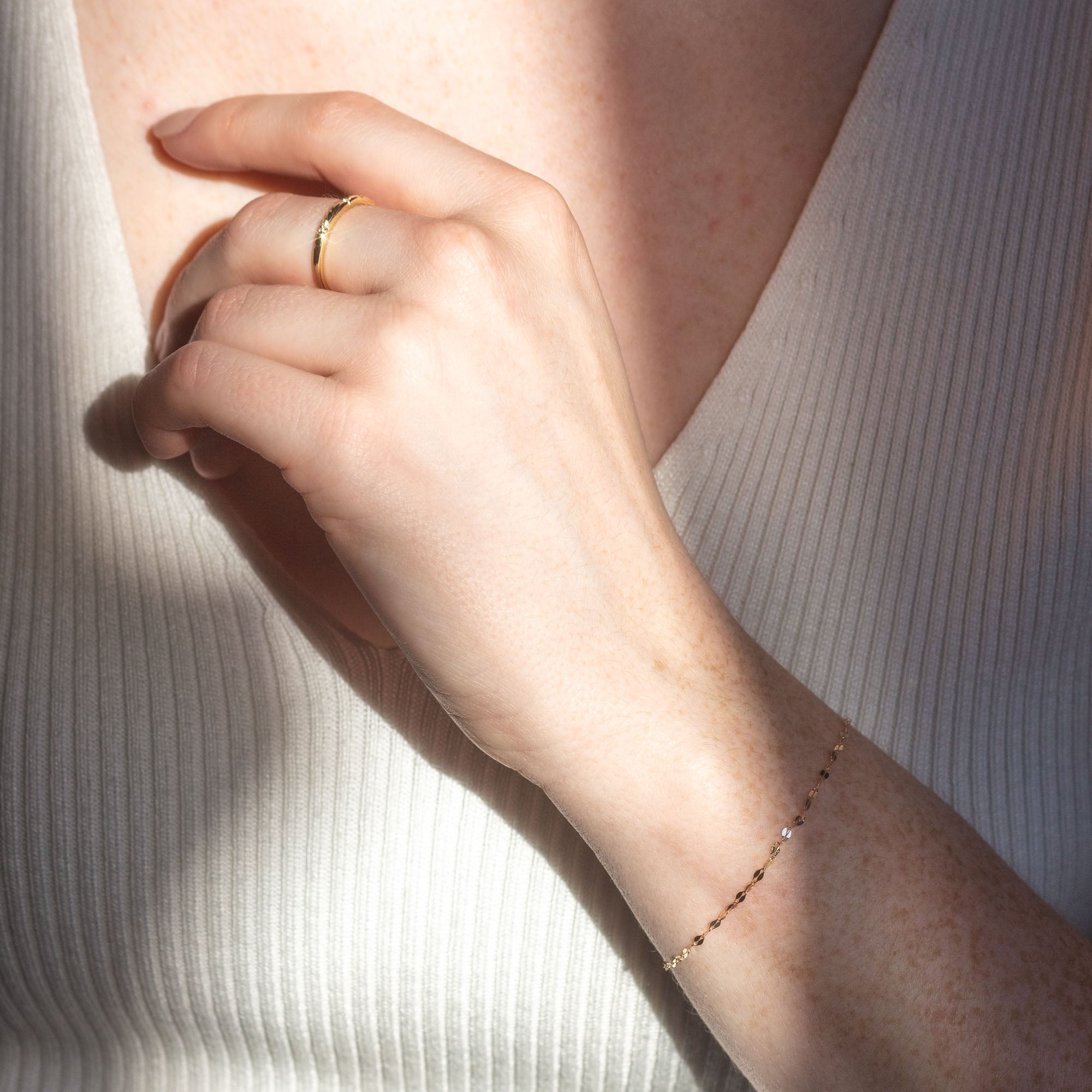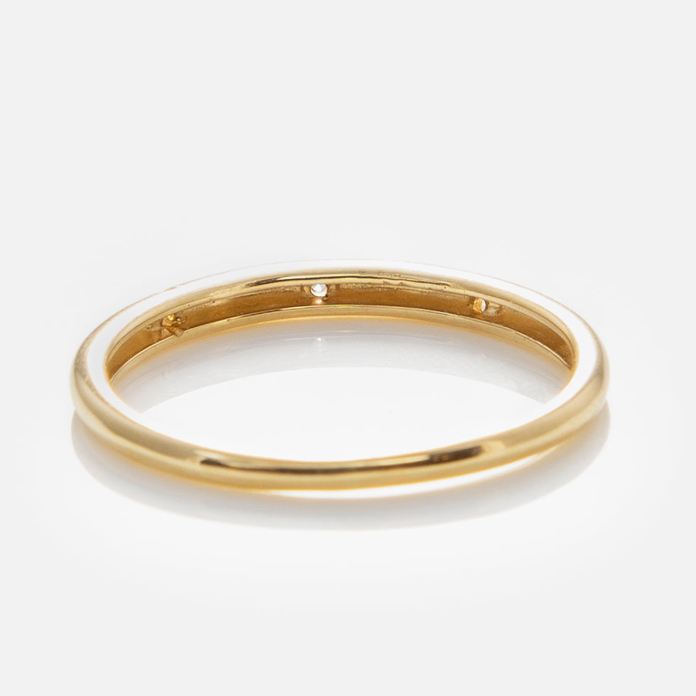 This simple solid gold band is made extra special with the addition of white sapphire set stars in delicate yellow gold. It's the perfect ring to wear on its own for a dainty everyday look or add some celestial glam to a ring stack.