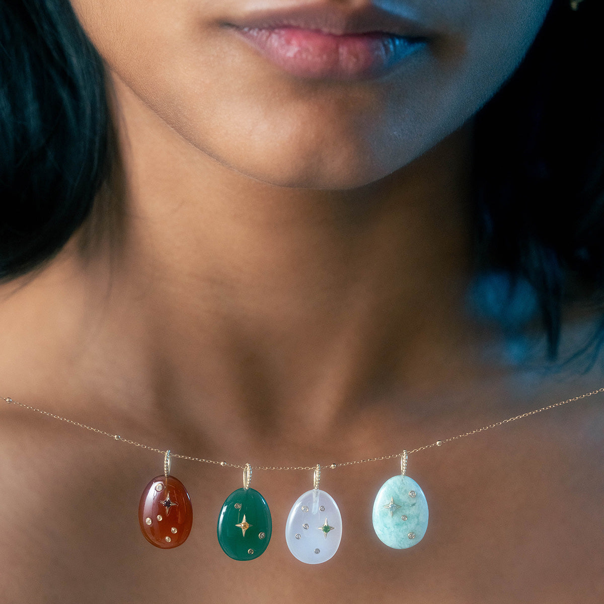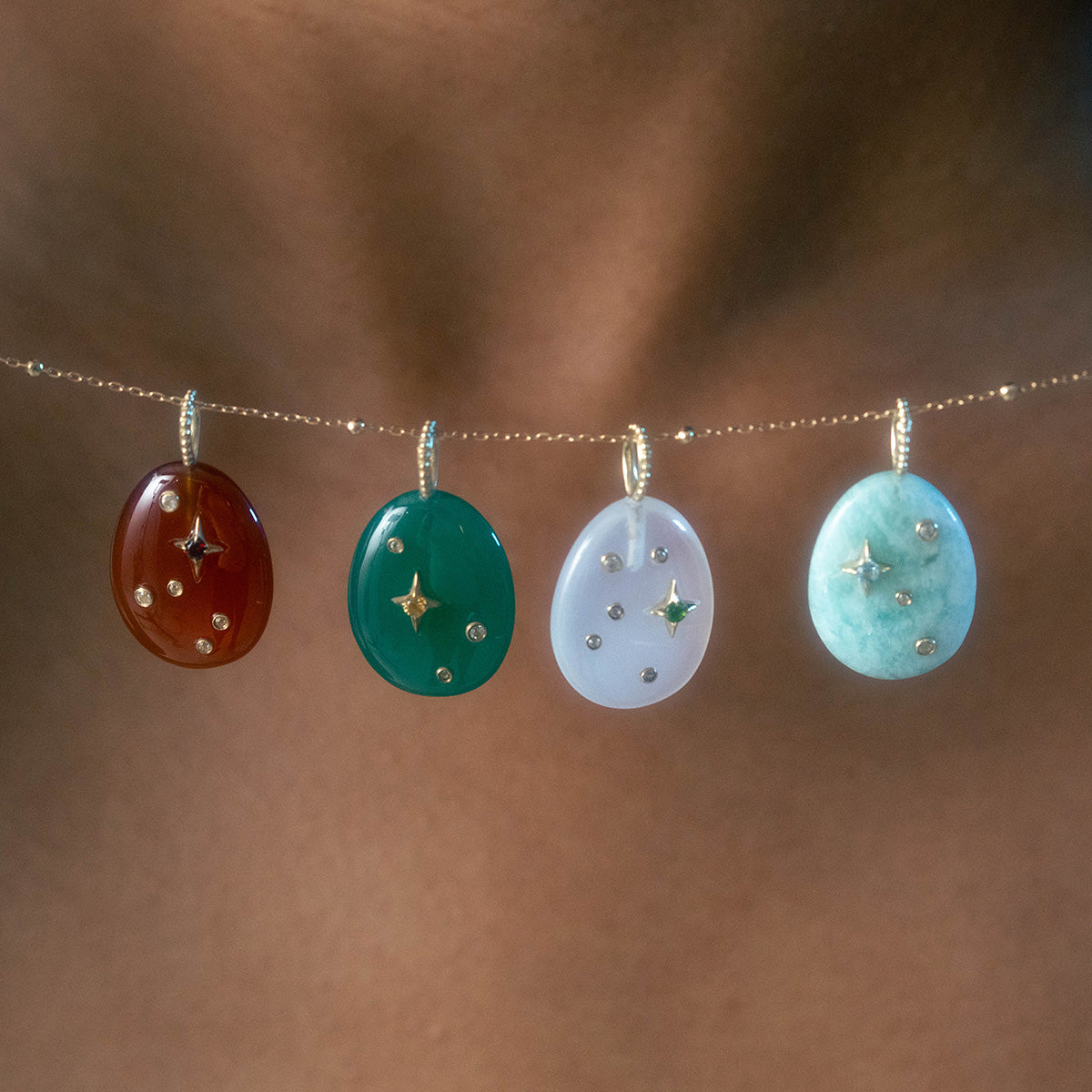 Represent your own unique intergalactic star family with the Solid Gold Zodiac Constellation Crystal Charm. These remarkably detailed crystal charms are designed with starry solid gold and gemstone accents and feature the celestial formations that make up each of the 12 signs of the zodiac. The color of the crystal denotes the element (fire. water. air. earth) that rules your zodiac sign. A stunning way to personalize your favorite necklace and let the stars be your guide.