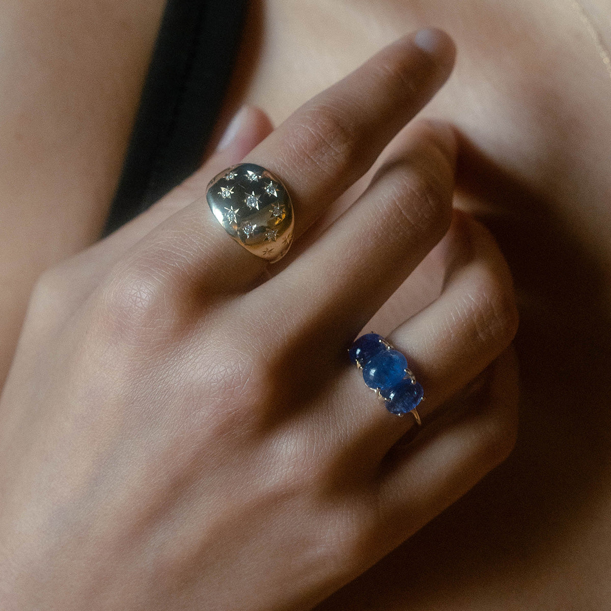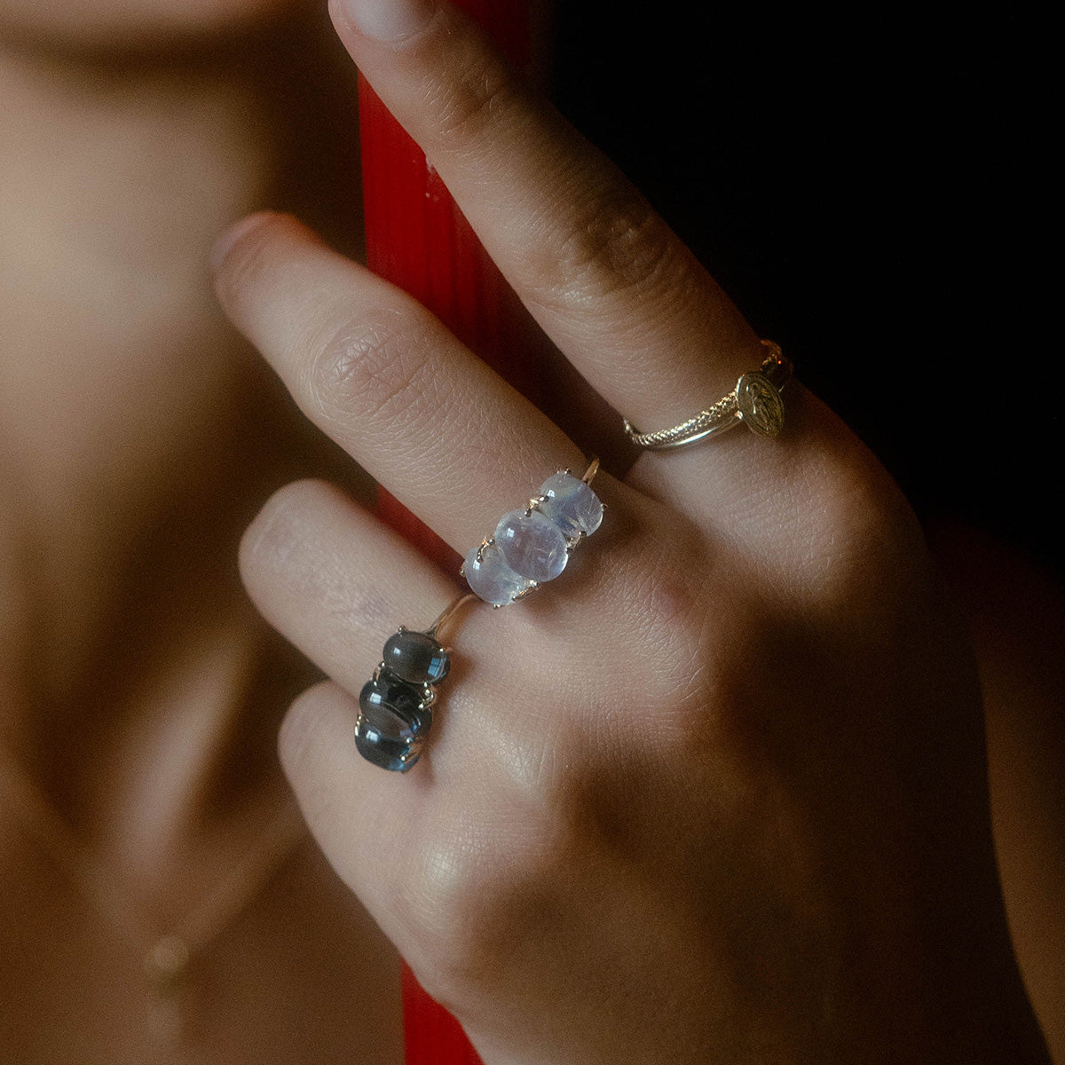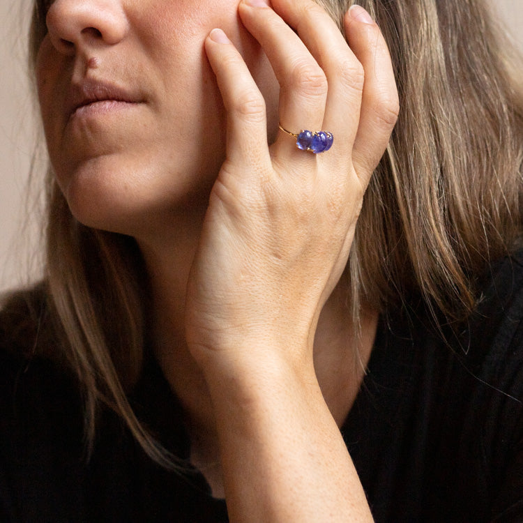 Inspired by candy and looks good enough to eat. The Sweetest Gumdrop Ring from Charlie and Marcelle features three stunning natural gemstones set into solid yellow gold which means it will last forever.