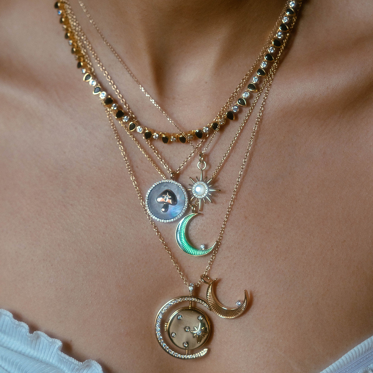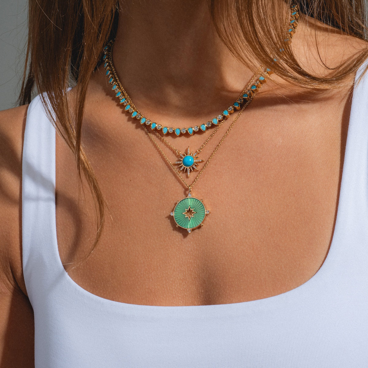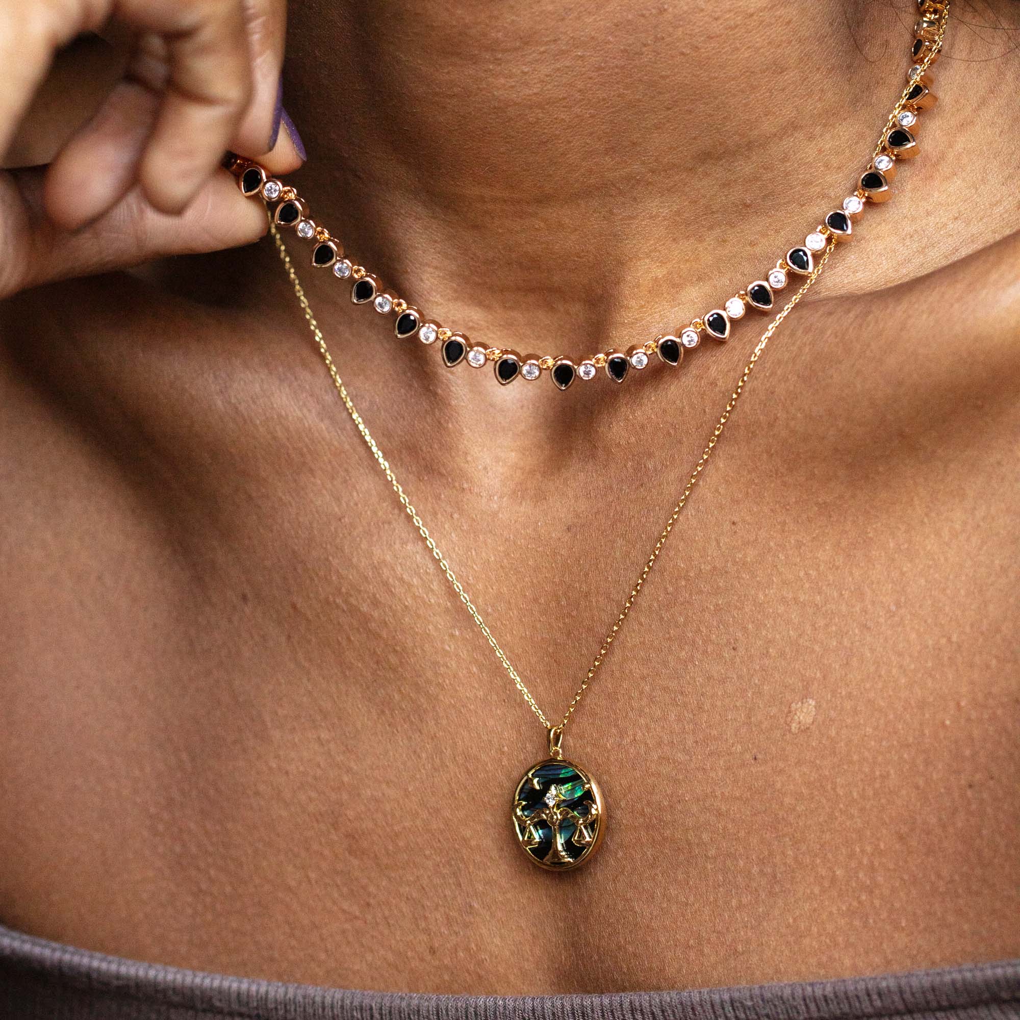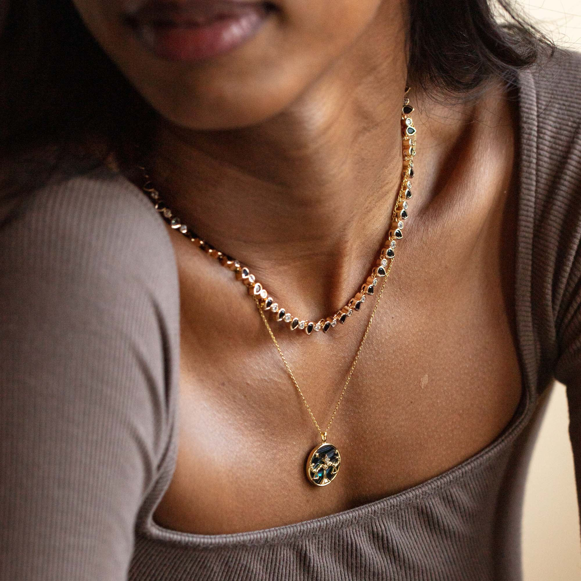 A dazzling tennis necklace for when you're feeling a little extra. This stunning pieces comes in classic white. edgier black. or pretty pastel CZs.